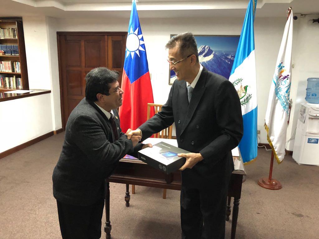 中華民國駐瓜地馬拉大使賴建中與瓜國社會發展部部長Alcides René Obregón Muñoz於1月24日下午在大使館大廳共同主持我國援贈該部35部平板電腦公開捐贈儀式,出席人員包括,該部次長Francisco Santizo、國際合作處處長Erick Bolaños等該部一級主管及顧問等官員。