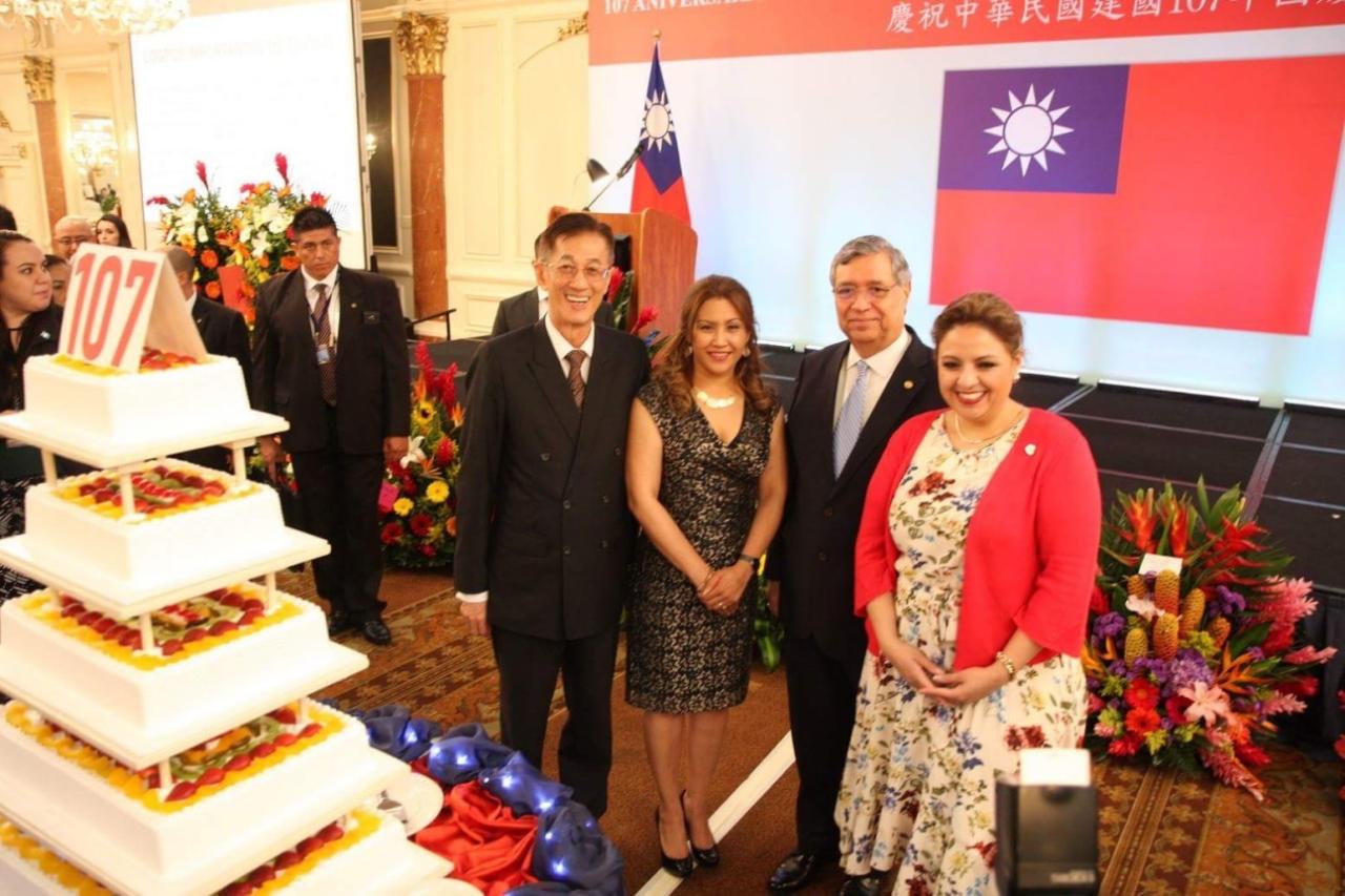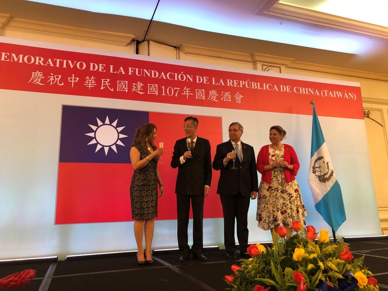 賴大使嗣與第一夫人瑪洛晶女士、卡培拉副總統及何薇外交部長等共同舉杯,互祝國運昌隆,並共切國慶蛋糕,慶賀中華民國建國107年。酒會現場並播放「以人為本、幸福共好」國慶文宣影片,駐瓜大使館也精心準備包括珍珠奶茶等臺灣特色美食,搭配地域風味之佳餚,現場氣氛溫馨、熱絡,賓主互動友誼百分百,共渡歡慶中華民國107年生日的美好夜晚。