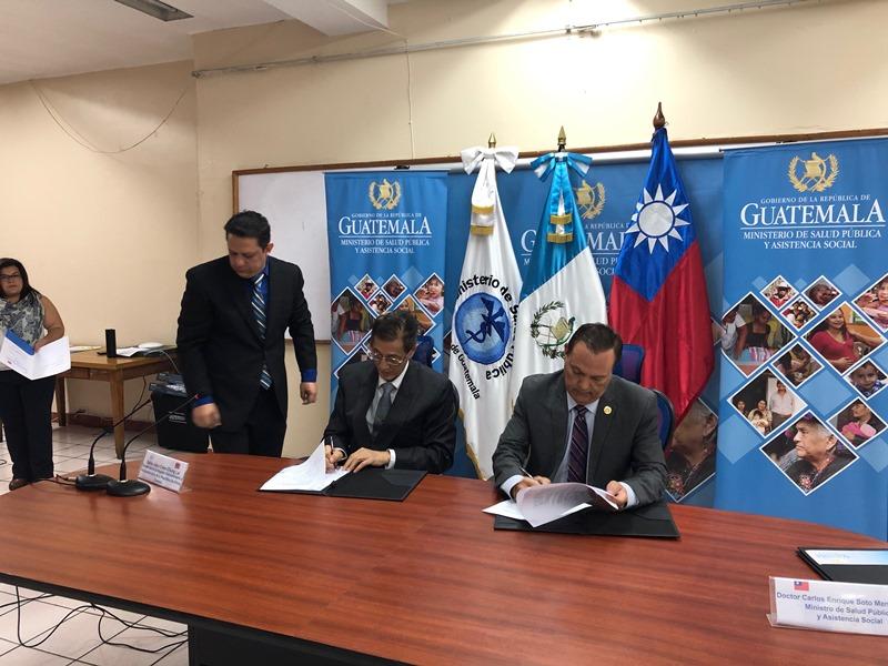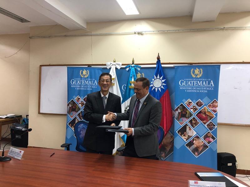 駐瓜地馬拉賴大使建中與瓜國衛生部長蘇托共同簽署「瓜地馬拉運用醫療科技提升孕產婦與新生兒保健功能計畫」行動方案。