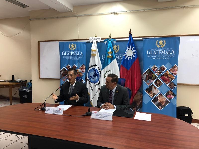駐瓜地馬拉賴大使建中本(108)年6月4日上午與瓜地馬拉衛生部長蘇托(Carlos Enrique Soto Menegazzo)於瓜國衛生部共同主持旨計畫行動方案簽約儀式,瓜國衛生部、駐館及技術團同仁及媒體人士等約50人出席觀禮。首先由賴大使致詞,繼由雙方簽署旨揭行動方案,嗣在蘇托部長致詞後結束簽約儀式。賴大使致詞表示,瓜國現政府自始即優先對弱勢民眾推動醫療照護計畫,我國政府亦配合前述瓜國政策捐贈藥品、派遣醫療團及協助訓練瓜國醫護人員。本計畫源於2016年第一夫人訪臺參訪臺大醫院後,對我國醫療科技之先進及初生嬰兒死亡率之低印象深刻,爰盼我協助瓜國醫院提升孕產婦與新生兒保健功能,臺大醫院嗣派員來瓜參訪Amatitlán及Cuilapa兩所醫院並進行評估後促成本計畫。我盼透過本計畫行動方案之簽署,支持瓜國政府提升孕產婦與新生兒保健功能、訓練更多醫護人員及推動醫療科技合作,並盼瓜我兩國續共同努力使更多瓜國孕產婦與新生兒及其家庭受益。瓜國蘇托部長則致詞表示,渠上任後即致力強化瓜國醫療體系並降低初生嬰兒死亡率,本計畫之推動將有效達成前述目標,感謝我政府援助。另渠日前參加本年世界衛生大會期間有幸與我衛福部陳部長晤談,並就我續協助瓜國提升醫療體系相關功能交換意見。蘇托部長嗣強調本計畫對瓜國之重要性,並重申對我國之感謝與友誼。