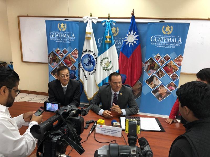 駐瓜地馬拉賴大使建中與瓜國衛生部長蘇托共同主持「瓜地馬拉運用醫療科技提升孕產婦與新生兒保健功能計畫」行動方案簽約後接受記者訪問。