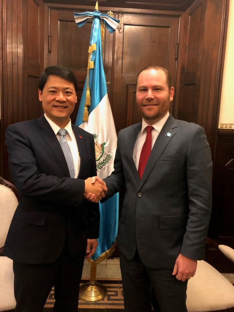 駐瓜地馬拉鄭大使拜會瓜國國會議長阿爾蘇(Álvaro Arzú)並與其合影