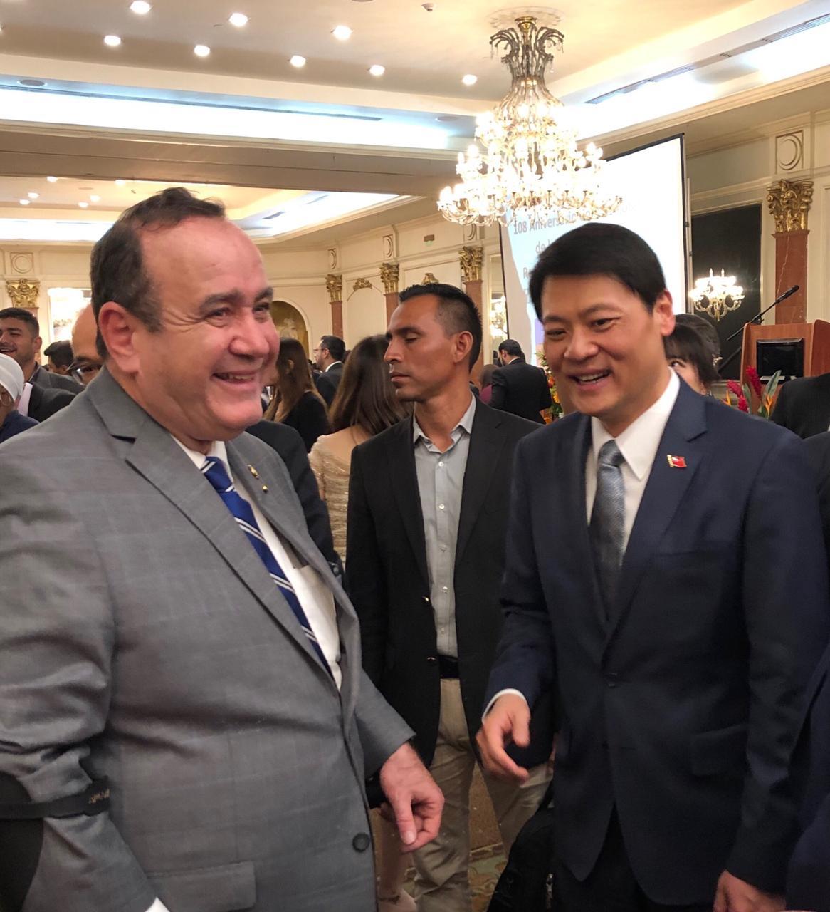 駐瓜地馬拉鄭大使於10月9日晚上(當地時間)在瓜京皇道飯店(Hotel Camino Real)主持慶祝108年國慶酒會,瓜國第一夫人瑪洛晶女士(Patricia Marroquín de Morales)、國會議長阿爾蘇(Álvaro Arzú Escobar)、外交部次長賈西亞(Pablo César García Sáenz)、內閣部會首長、駐瓜外交團團長暨使節團、工商企業及新聞文化等各界友人暨僑胞700餘人蒞臨會場。此外,瓜國總統當選人賈麥岱(Alejandro Giammattei)及副總統當選人卡斯提佑(César Guillermo Castillo)偕其未來執政團隊多名候任部長亦應邀出席。