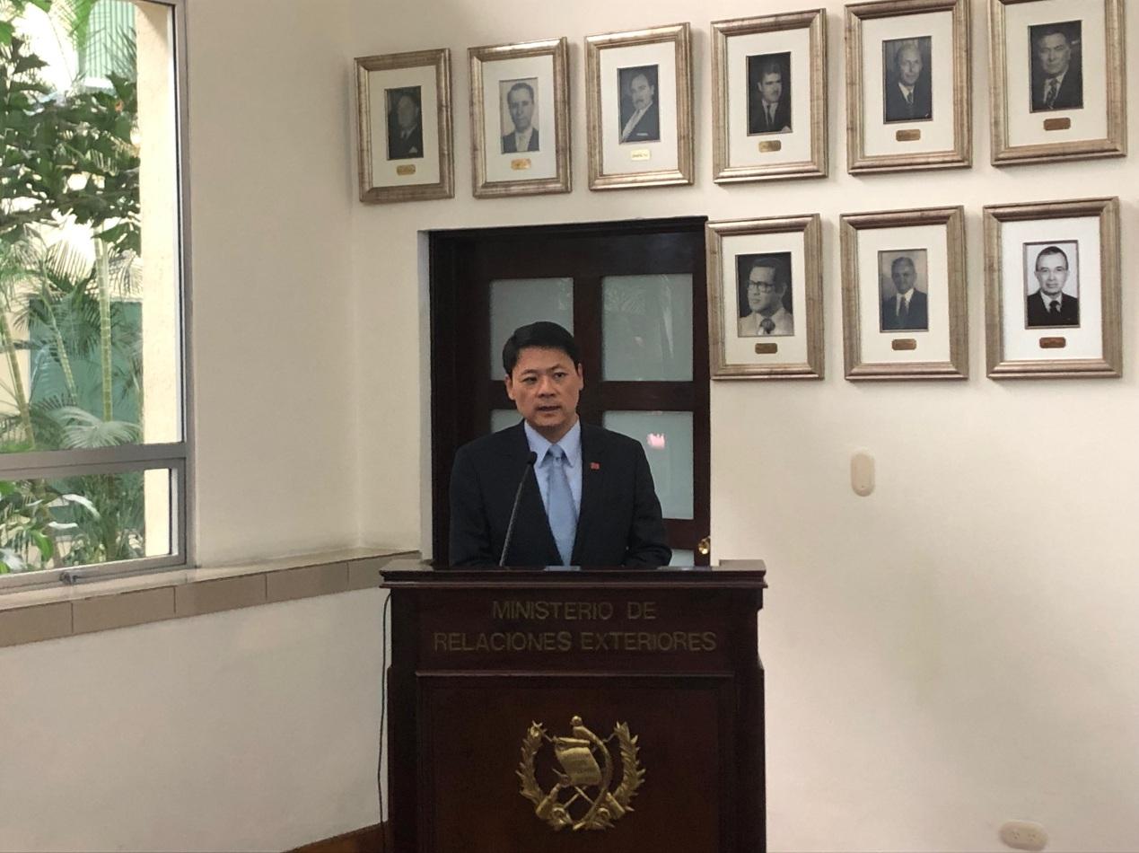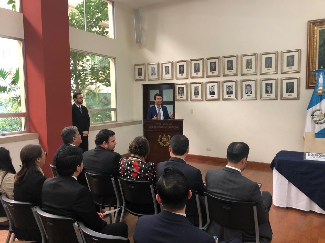 駐瓜地馬拉大使館應瓜國外交部邀請,於當地時間10月25日上午在瓜外交部舉辦我國獎學金受獎生留學經驗分享會。前述分享會由鄭大使與瓜國外交部次長艾斯特拉達(Jairo ESTRADA)共同主持,前駐台亞谷華大使、外交部官員、留台校友會成員亦應邀出席。