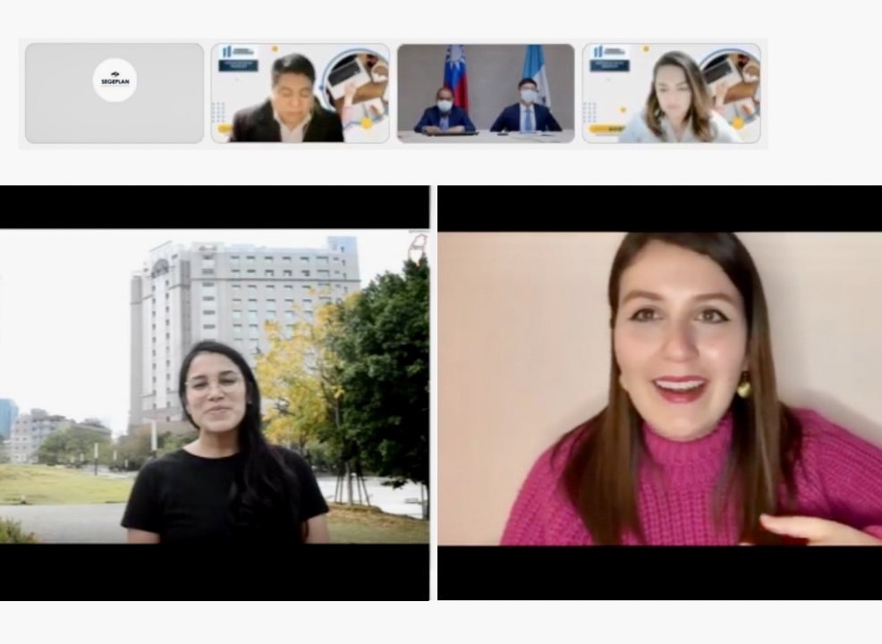 照片1:瓜國總統府計畫規劃局獎學金處處長Karla Arango、獎學金宣傳部主任Nelson Méndez致詞(線上最高人數為約200人)