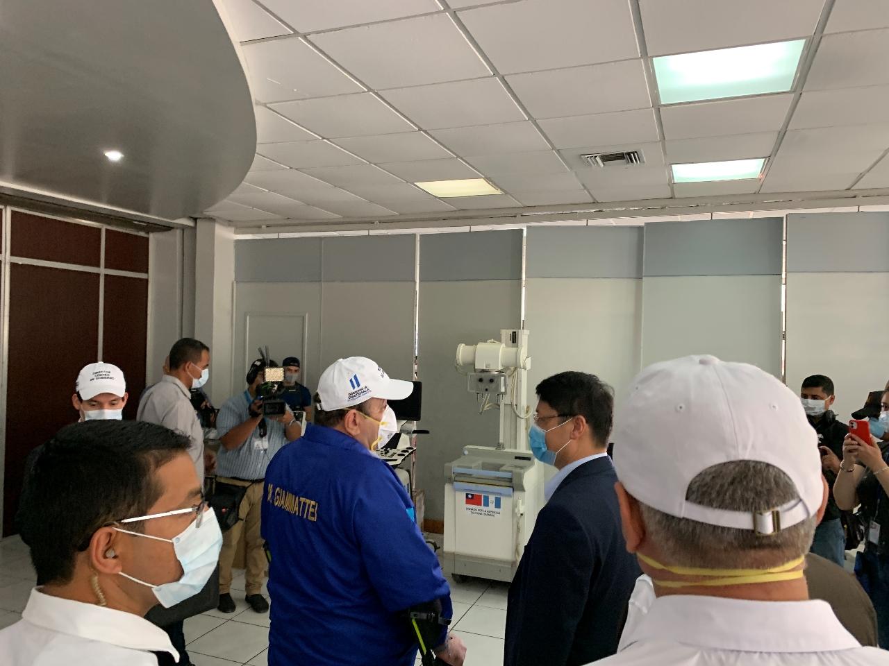 Con motivo de enfrentar conjuntamente la crisis de coronavirus (COVID-19) con el pueblo guatemalteco, la República de China (Taiwán), a travéz de su Embajada acreditada en Guatemala, hizo entrega de los equipos Ultrasonido, Rayos X, Monitores de Signos Vitales y Máquina de Anestesia al Gobierno de la República de Guatemala, para el uso del Hospital temporal del Parque de la Industria en la ciudad de Guatemala.