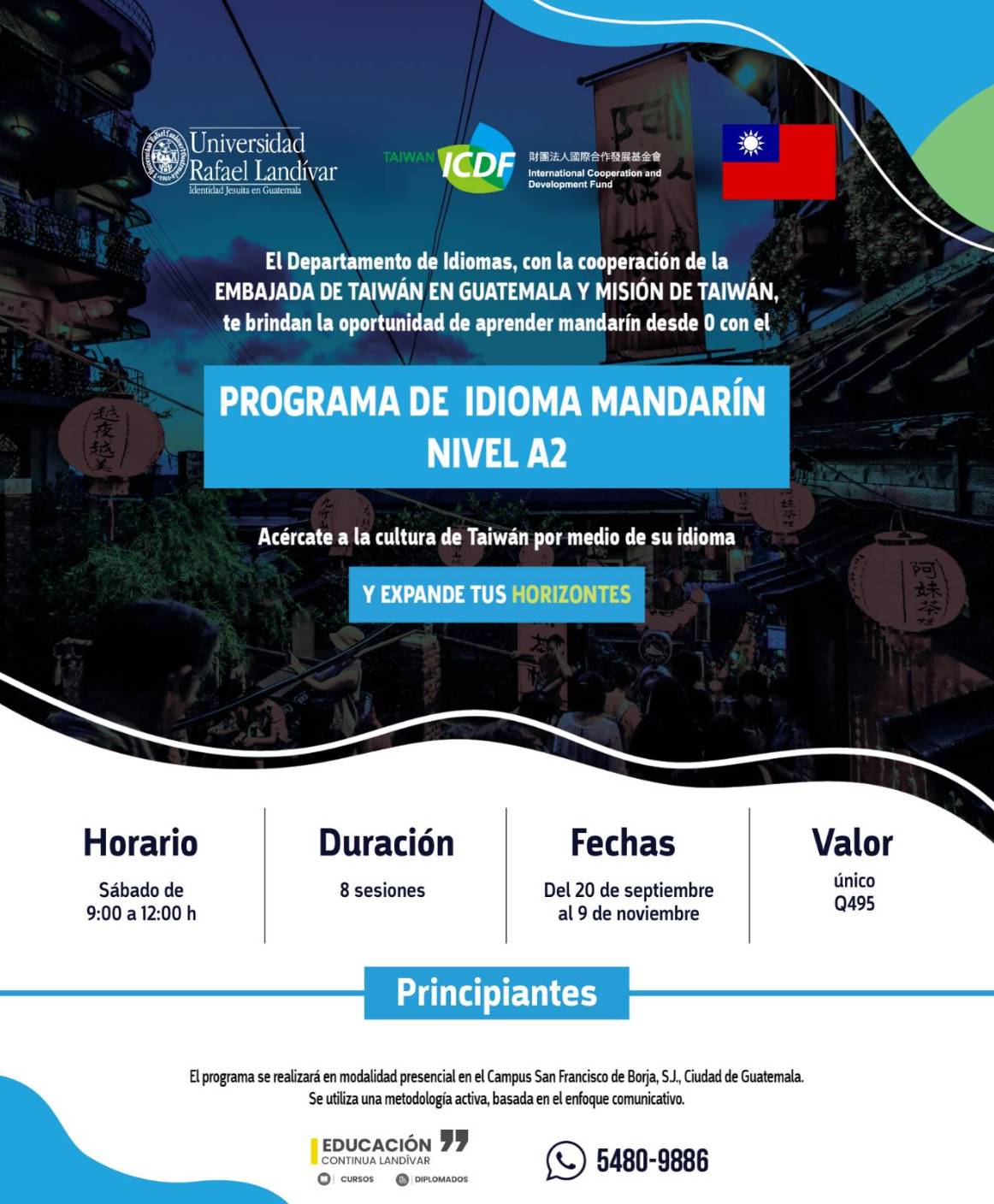 La Embajada de la República de China (Taiwán) y la Misión Técnica en coordinación con la Universidad Rafael Landívar, invitan al Curso de Chino Mandarín, impartido por una profesora taiwanesa con amplia experiencia.