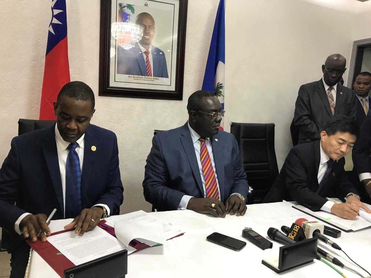 駐海地大使胡正浩與海地外長艾蒙席及農長安格宏簽署「海地全國稻種生產強化計畫」-阿迪波尼省子計畫及北部及東北省子計畫兩項執行協議