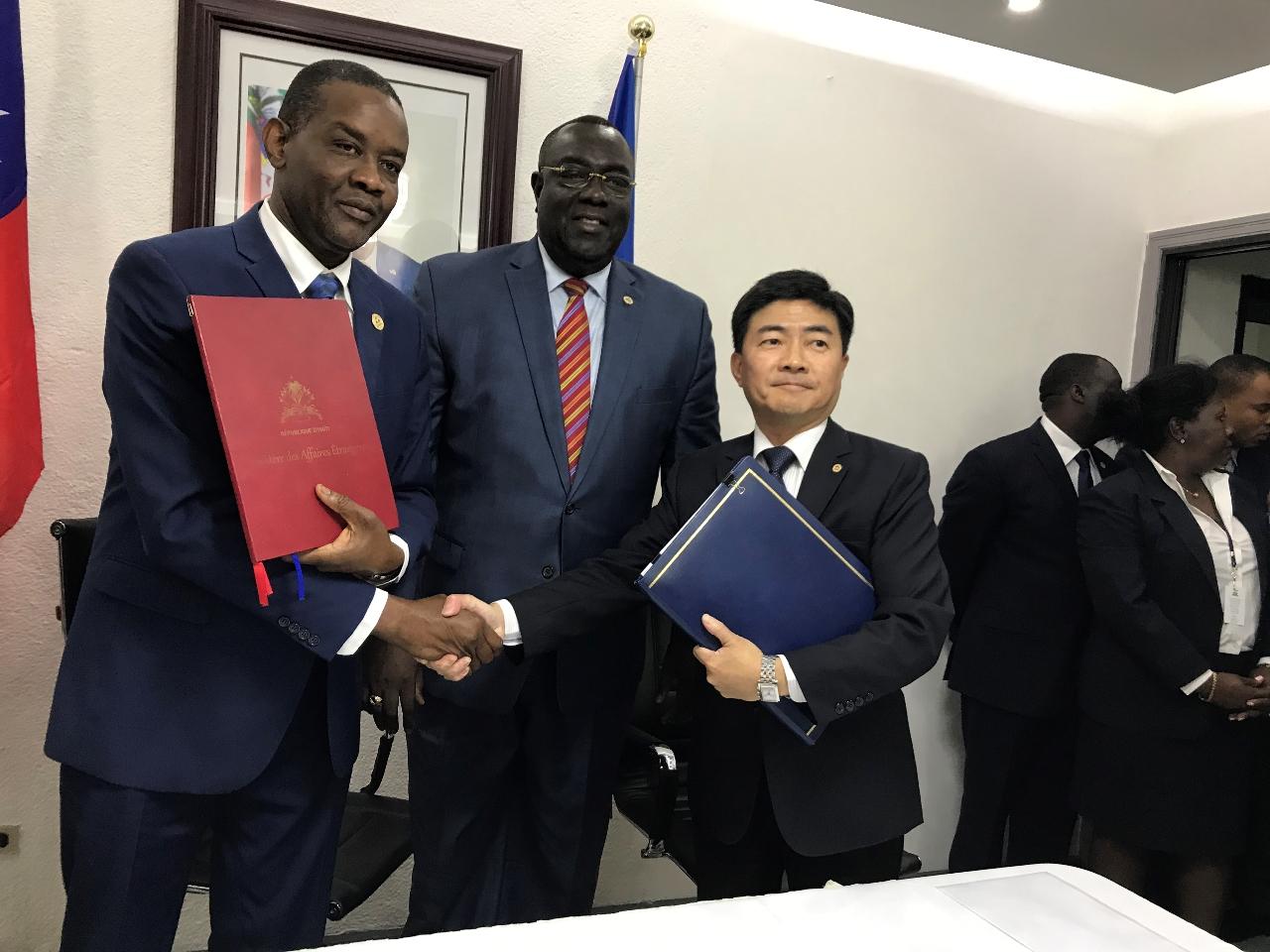 駐海地大使胡正浩與海地外長艾蒙席及農長安格宏簽署「海地全國稻種生產強化計畫」-阿迪波尼省子計... - 駐海地共和國大使館 Ambassade de la République de Chine (Taïwan) en Haïti ::: 跳到主要內容區塊