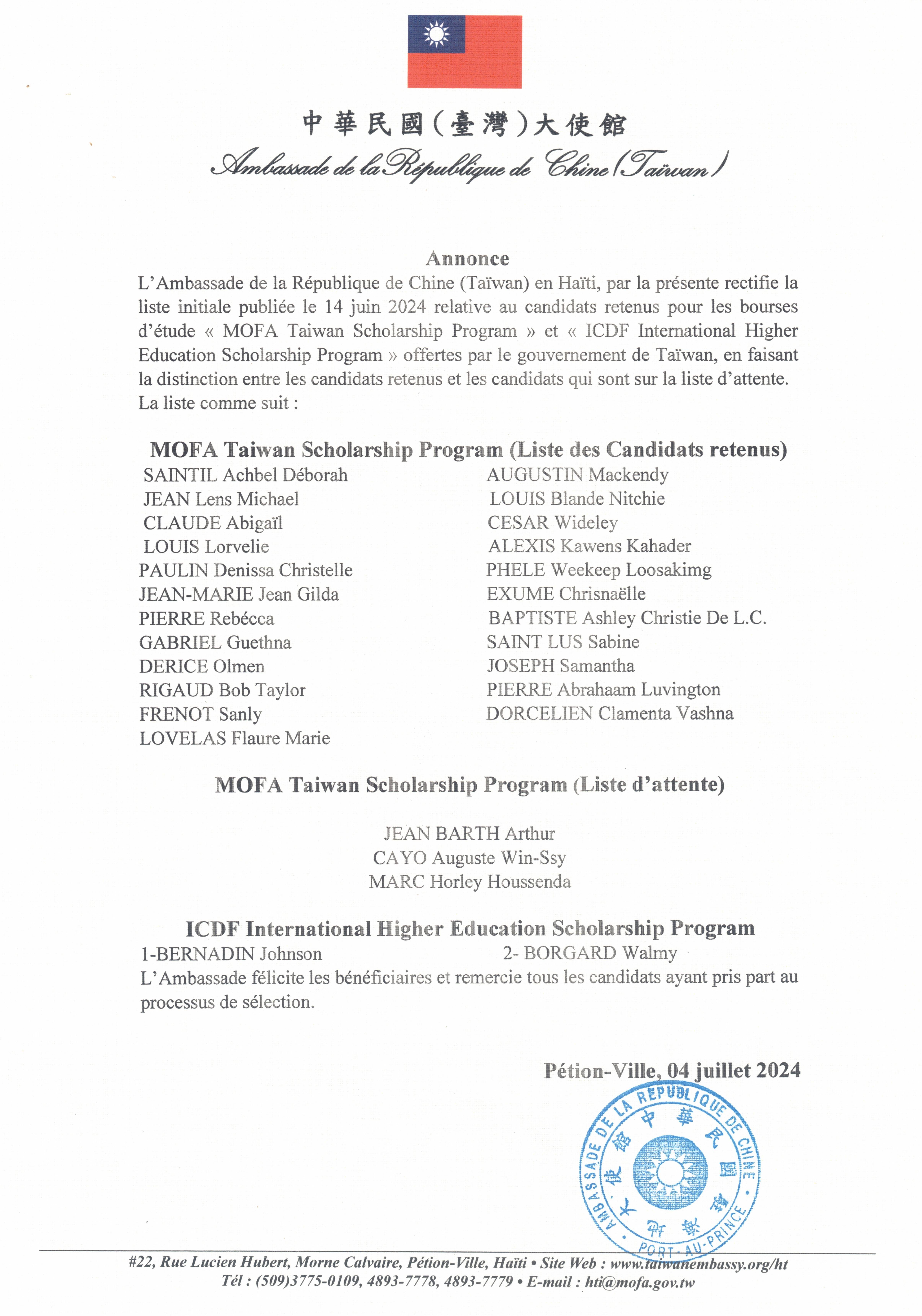 Ambassade de la République de Chine (Taïwan) en Haïti