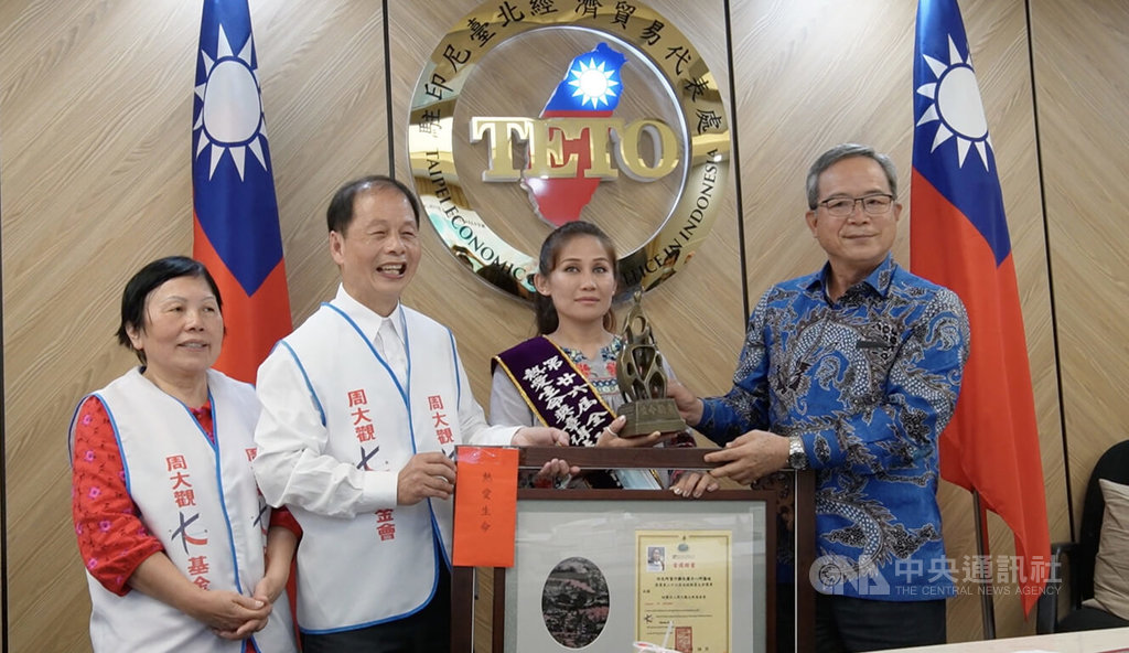 周進華等人從台灣遠赴印尼,今天上午頒發「全球熱愛生命獎章」給阿薩迪(Meena Asadi),吸引許多印尼媒體到場採訪。