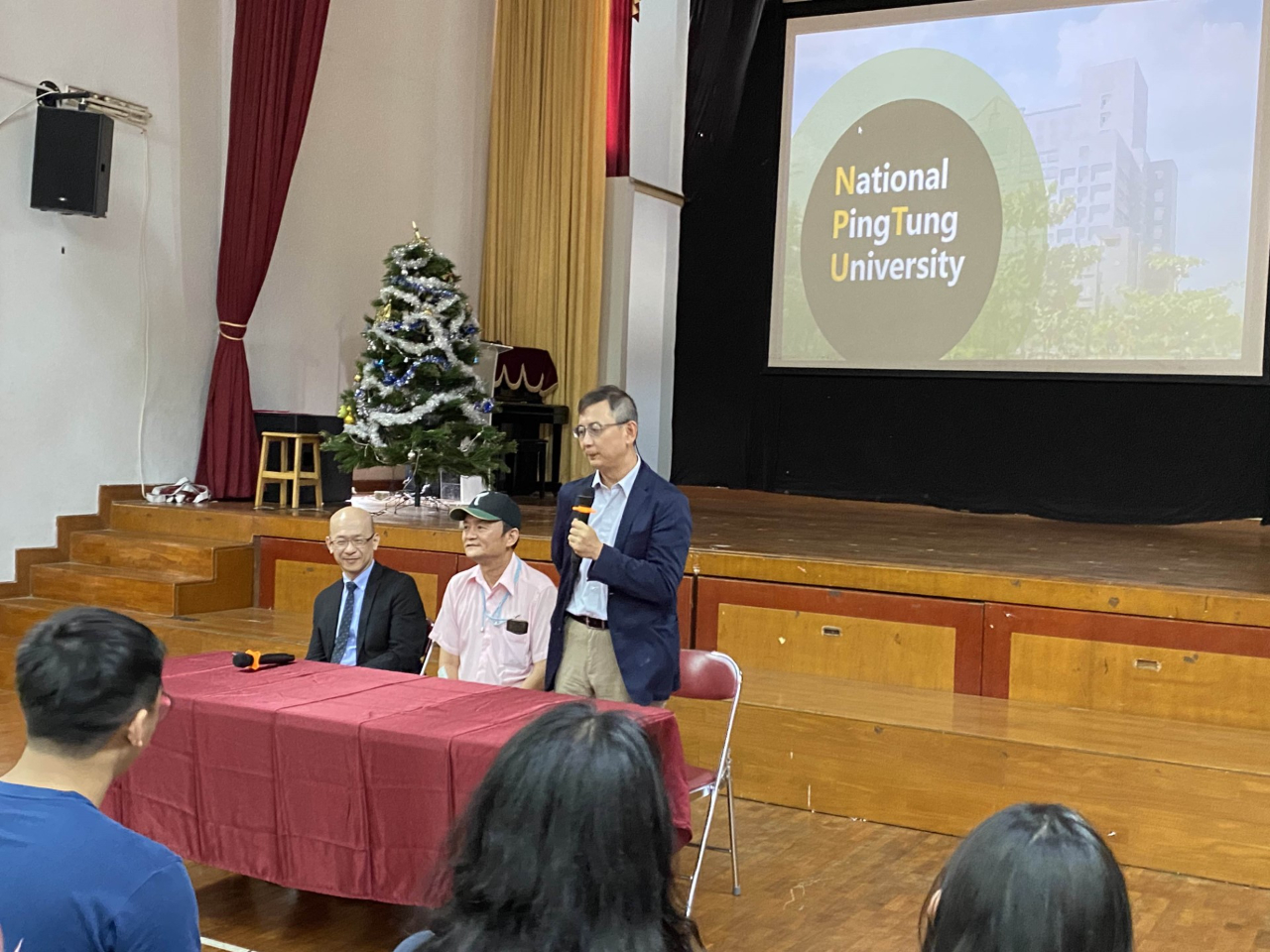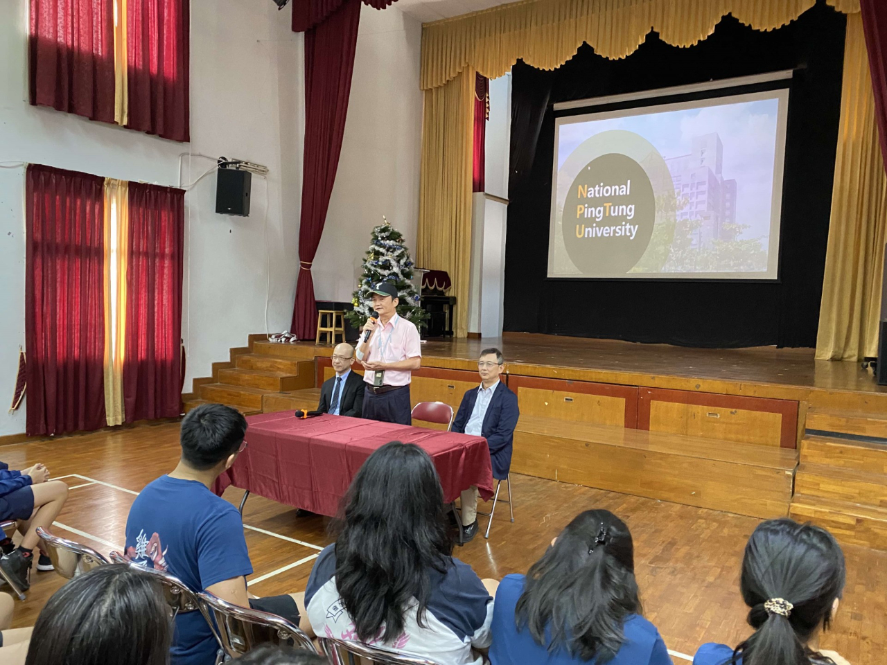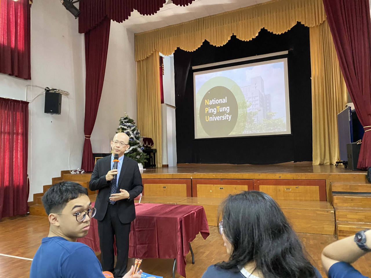 12月18日上午,訪視團一行假雅台校會議室,會同張校長晉福及教務處黃智勇主任,直接與國小部的林詩雅、中學部的周孝柔、賴傳升、簡筑君四位老師面對面互動,先聽取他們在教學上的回顧與展望,乃至於生活上的食衣住行、及工作中的酸甜苦辣,不設限地暢所欲言,期待於專長上能發揮地更淋漓盡致;而遇到瓶頸時,可吸取周遭資深老師的建言或經驗,如此對海外學子能發揮最大助益,也彰顯此補助專案政策的獨特性。而12月18日下午,訪視團師長也給雅台校G7~G12的140餘位同學們做了一場精彩的宣導介紹,陳永森校長、陳皇州國際長與施百俊副校長均深入淺出,妙語如珠地向同學們介紹位處南台灣的綜合型高教基地-國立屏東大學,有哪些特色與強項?每一位畢業生竟能有4份工作在向其招手,而且生活機能相當好,食衣住行育樂樣樣不缺,更提供優渥的獎助學金與工讀機會,使莘莘學子能安定求學,不虞匱乏。