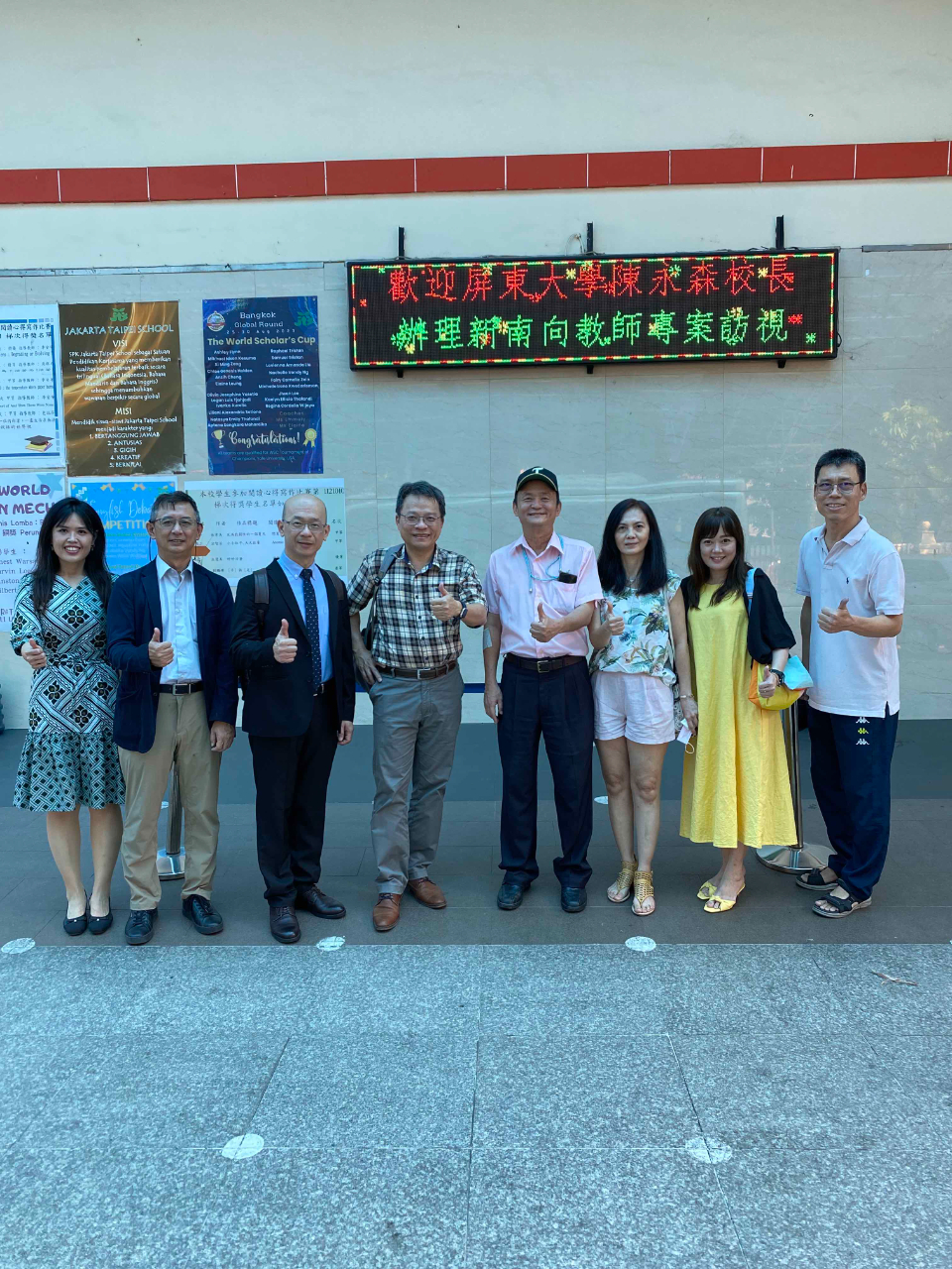 2023年12月17日下午,雅加達臺灣學校(Jakarta Taipei School)迎來了由國立屏東大學校長陳永森、副校長施百俊、國際長陳皇州三位博士,與鍾祈慧老師會同的輔導訪視團,要針對4位新南向專案教師作「售後服務」式地追蹤,實地蒞校進行雙向交流,全面性地了解計畫執行後的優、缺點,以期未來檢討改進後,能夠為海外僑教作出更實質性的貢獻。