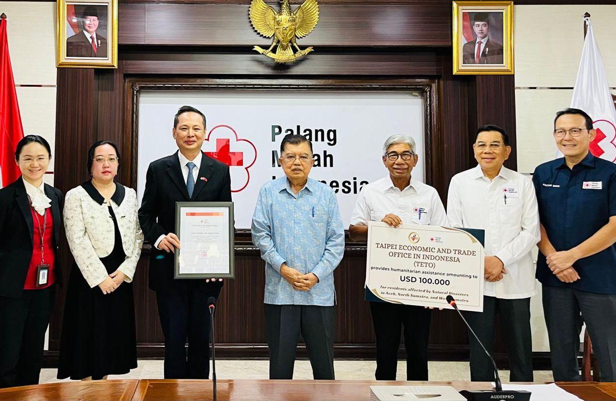 Pada tanggal 11 Maret 2026, Duta Besar Bruce Chen-jung Hung, Kepala Taipei Economic and Trade Office in Indonesia (TETO), menyerahkan donasi sebesar US$100,000 kepada Palang Merah Indonesia atas nama pemerintah Taiwan untuk membantu upaya penanganan bencana di Sumatera. Donasi ini diterima oleh Ketua Umum Palang Merah Indonesia, Bapak Jusuf Kalla. Acara penyerahan donasi berlangsung di kantor pusat Palang Merah Indonesia dan dilaksanakan dengan sederhana tetapi sangat khidmat.