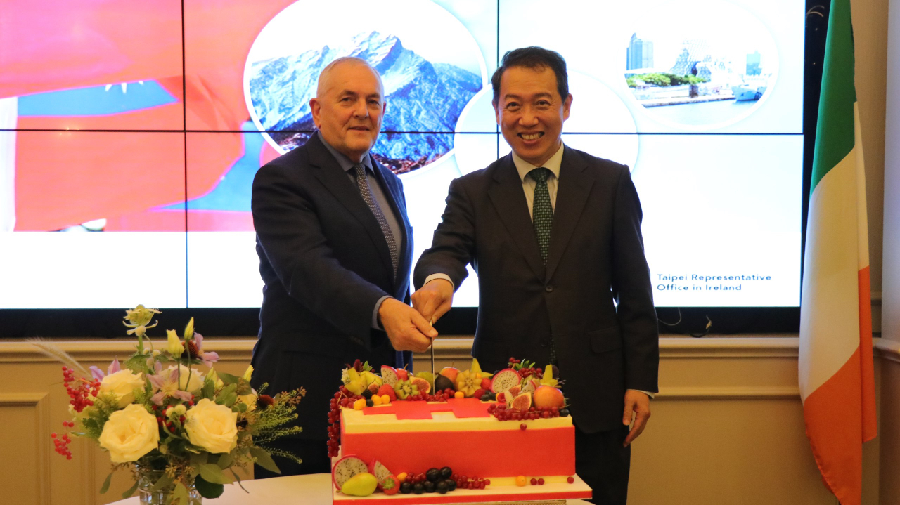 駐愛爾蘭代表處10月4日晚間於都柏林市中心威斯特柏里旅館(Westbury Hotel)宴會大廳舉行111年國慶酒會。這是經歷新冠病毒大流行以來代表處第一次完全回歸正常的大型活動。國會友台小組主席眾議員麥金尼斯(John McGuinness)、「對華政策跨國議會聯盟」(Inter-Parliamentary Alliance on China, IPAC) 愛爾蘭分部兩位共同主席參議員伯恩(Malcolm Byrne)與沃德(Barry Ward)等30餘位參眾議員,以及立陶宛駐愛爾蘭大使館代表等外交、經貿、學術、文化及僑界人士總共約100人到場參與。