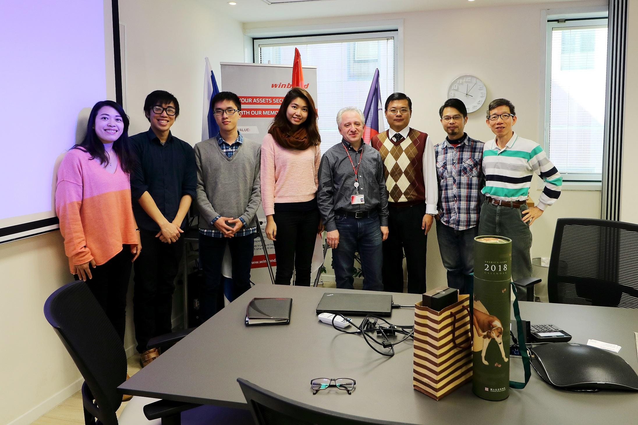 為協助我在以留學生瞭解以色列高科技公司實際運作情形,本處特於元月30日(星期二)上午安排參觀位於Herzliya市的Winbond科技,受到該公司總經理Ilia Stolov和人力資源部經理熱情接待。 S總經理首先簡介公司歷史及產品,Winbond科技為我科技大廠華邦電子在以色列分公司,專精電子晶片設計,有堅實的研發人才和通路。 期間留學生們與S總經理就資訊安全、台以科技產業發展,及兩國職場文化異同等交換意見,S總經理鼓勵青年學子勿畏懼自我表現,並以 If people is afraid of losing face, it means he (she) is afraid of new innovation. 與青年學生共勉。