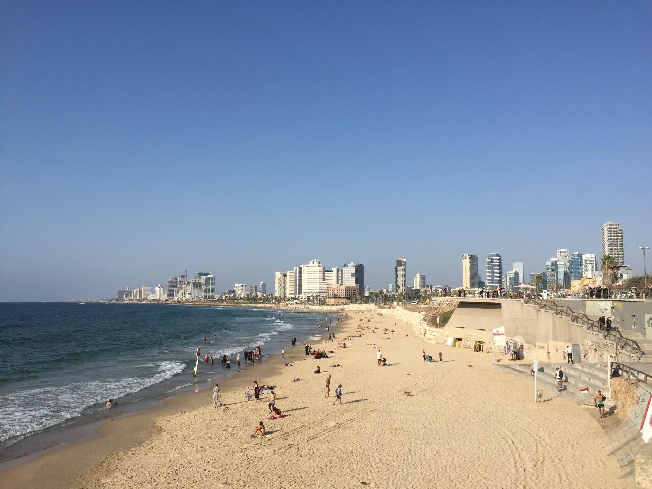 在以色列當志工的這段時間,我總是喜歡趁著下班後四處晃晃,有時候沒目的的亂走;有時候跟著GOOGLE導航走;有時候只是走到海邊看看海,這樣四處亂走的方式,無形中也讓我練出一身好腳力,每次走路起跳都一小時,最高紀錄達四小時。記得有一天最匆忙的走路是跟我國小同學聊天,聊著聊著,忽然談到她這輩子應該沒機會到以色列旅行,當下我馬上跟她說:「我現在走去海邊,讓你看一看街上風景以及課本中提到過的地中海」,就這樣一邊視訊一邊走路,抵達海邊時,已經是半小時後。