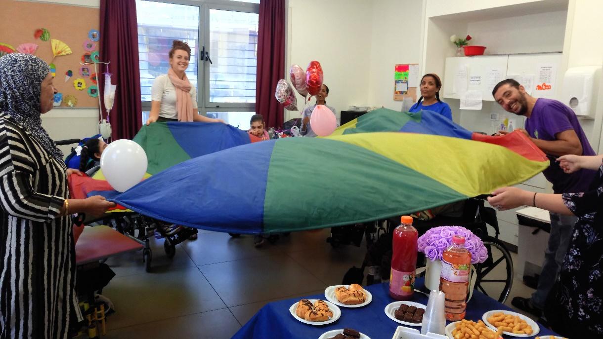 在這個機構工作,不僅要按照時間表進行課程,也要注意到小朋友們的感受和安全。工作時常常會遇到餵食和操作機器上的困難,必須克服自己對語言和心理上的障礙,提起勇氣用簡單的希伯來文單詞、英語和肢體語言,去向有經驗的志工、職員們請教。每兩個禮拜我們都會有國際志工的小型聚會,討論哪裡需要檢討改進,以及訂定下一階段的目標,每位從不同國家來的志工,都會煮不同國家的菜餚,在被異國美食圍繞的餐桌上一起分享經驗、學習,我覺得在當志工的路上有一群志同道合、彼此加油打氣的夥伴是再適合也不過了。