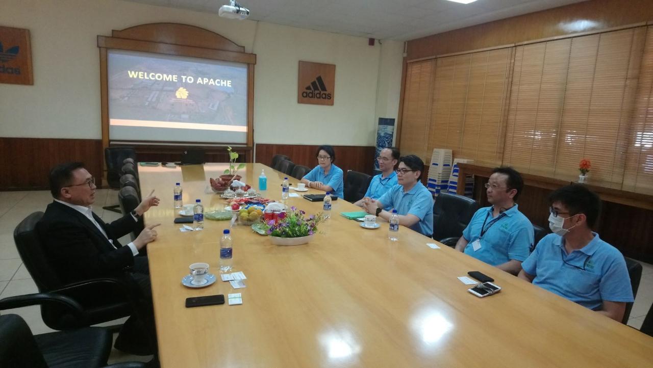 駐清奈辦事處處長王北平3月13日下午偕魏明宜組長驅車前往位於南方州的萬邦鞋業公司(Apache)參觀,受到該公司總經理張正立等人熱烈歡迎並簡報,張總經理表示該公司員工有12,500人,在中美貿易戰等因素影響仍將持續量產,為公司營運績效謀求最大利益,並盡企業主社會責任,為地方社區及民眾維持良好關係,王處長對該公司成立以來各方面表現表示嘉許。