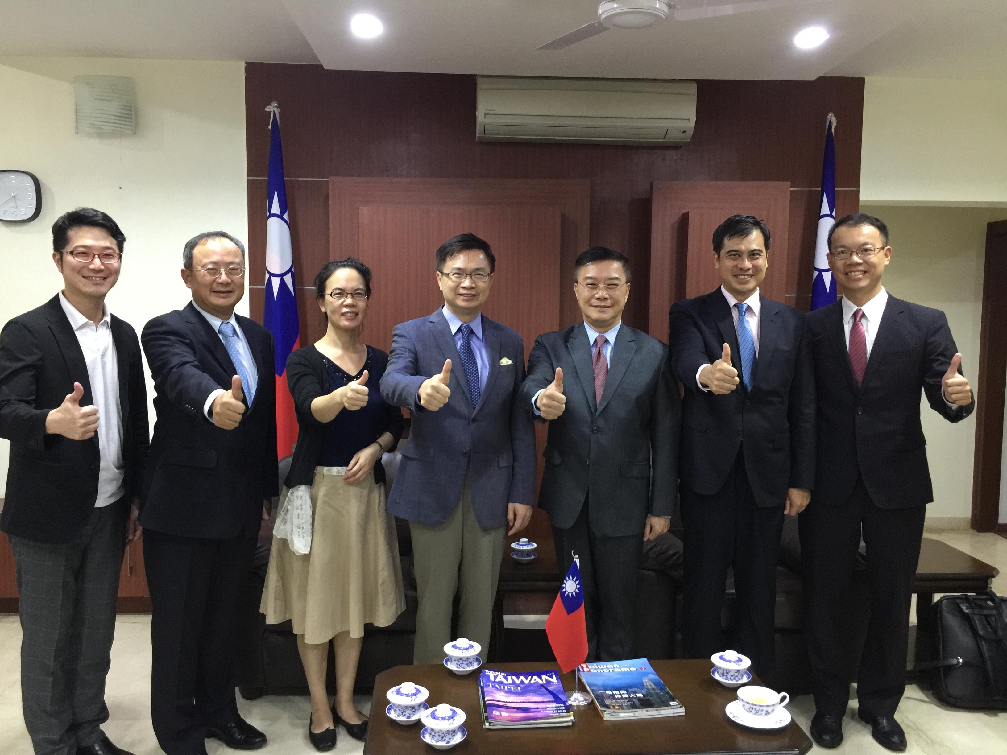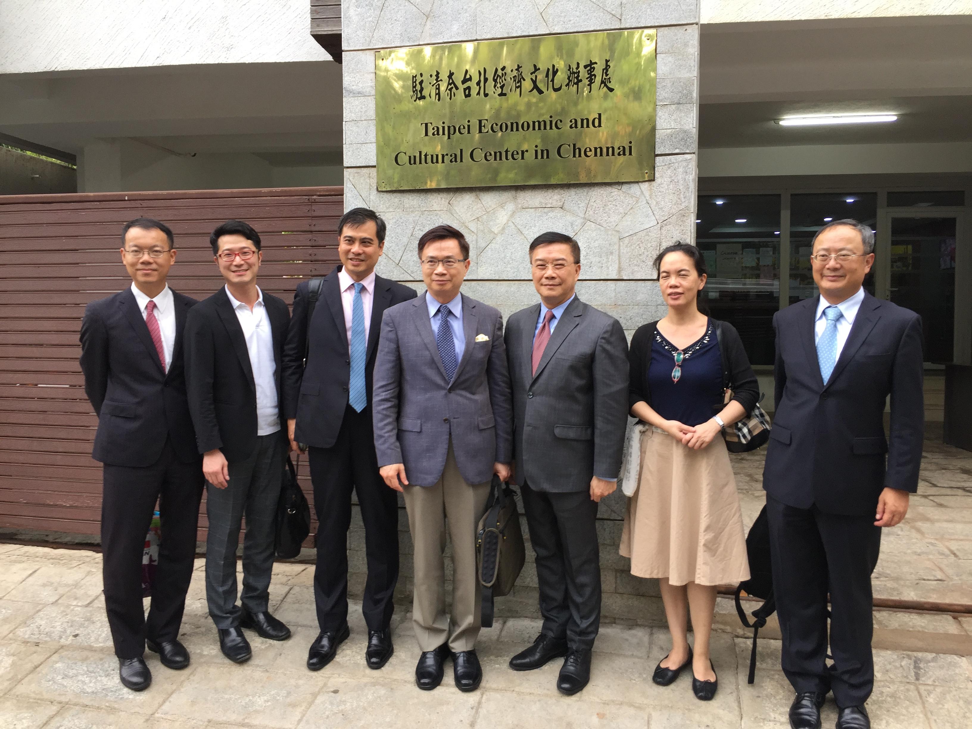 中華民國對外貿易發展協會黃志芳董事長6月20日下午率團拜會駐清奈辦事處,李朝成處長率全體同仁熱誠歡迎。 黃董事長表示,國人及台商對新南向政策最大的目標國-印度的發展潛力與廣大內需市場的商機認識仍極為不足!此次特率訪團該會市場拓展處印度專案小組及台商代表前來南印度,拜會數家知名印度企業集團,也參訪工業區及台商工廠,瞭解發展現況與前景,並聽取已設立據點經營多年台商及印商之建言,為台商拓展更廣大商機及尋求台商適合前來印度投資設廠的聚落。
