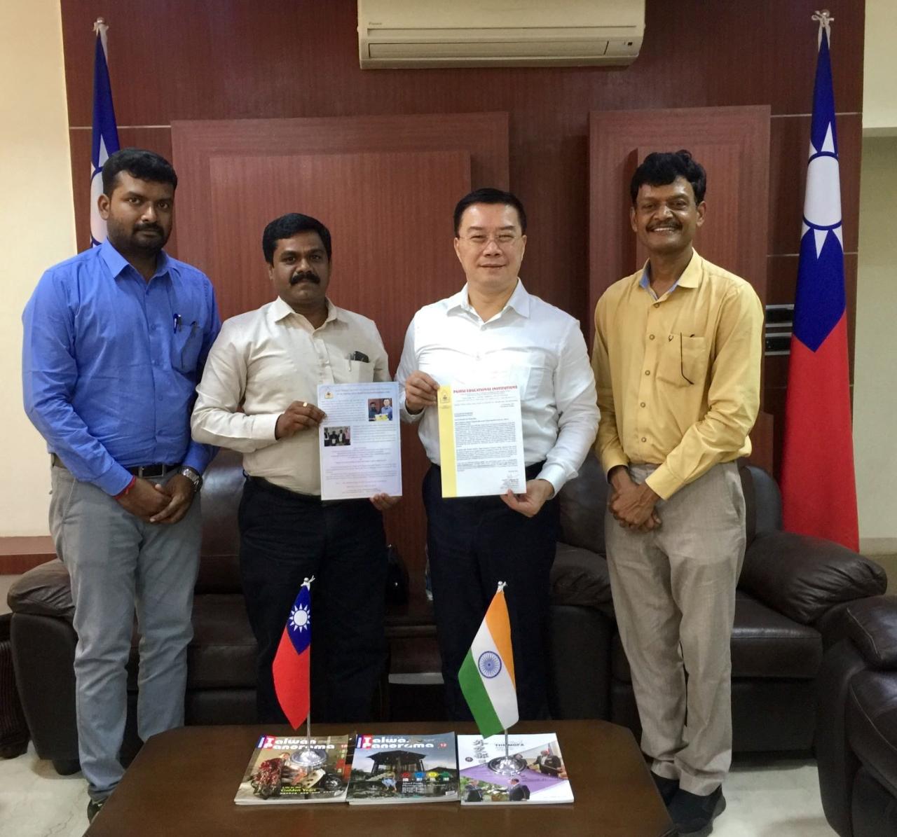 印度理工學院孟買分校(IIT-B)客座教授Dr. U. Chandrasekhar偕Paavai 工程學院(Paavai Engineering College)院長 Dr. M. Premkumar 等三人拜會駐清奈辦事處李朝成處長,商討2月下旬在該學院舉行臺灣高峰會相關作業細節。