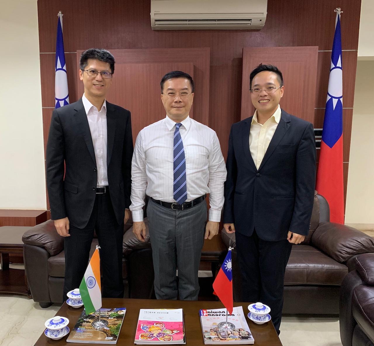 新任中國信託商業銀行清奈分行江明群經理及黃聖棋經理於本(6)月13日下午拜會駐清奈辦事處李朝成處長,李處長熱忱歡迎江經理履新,簡介近年來臺商前來南印度投資設廠情形及未來投資發展前景,並交換在清奈生活資訊與經驗。