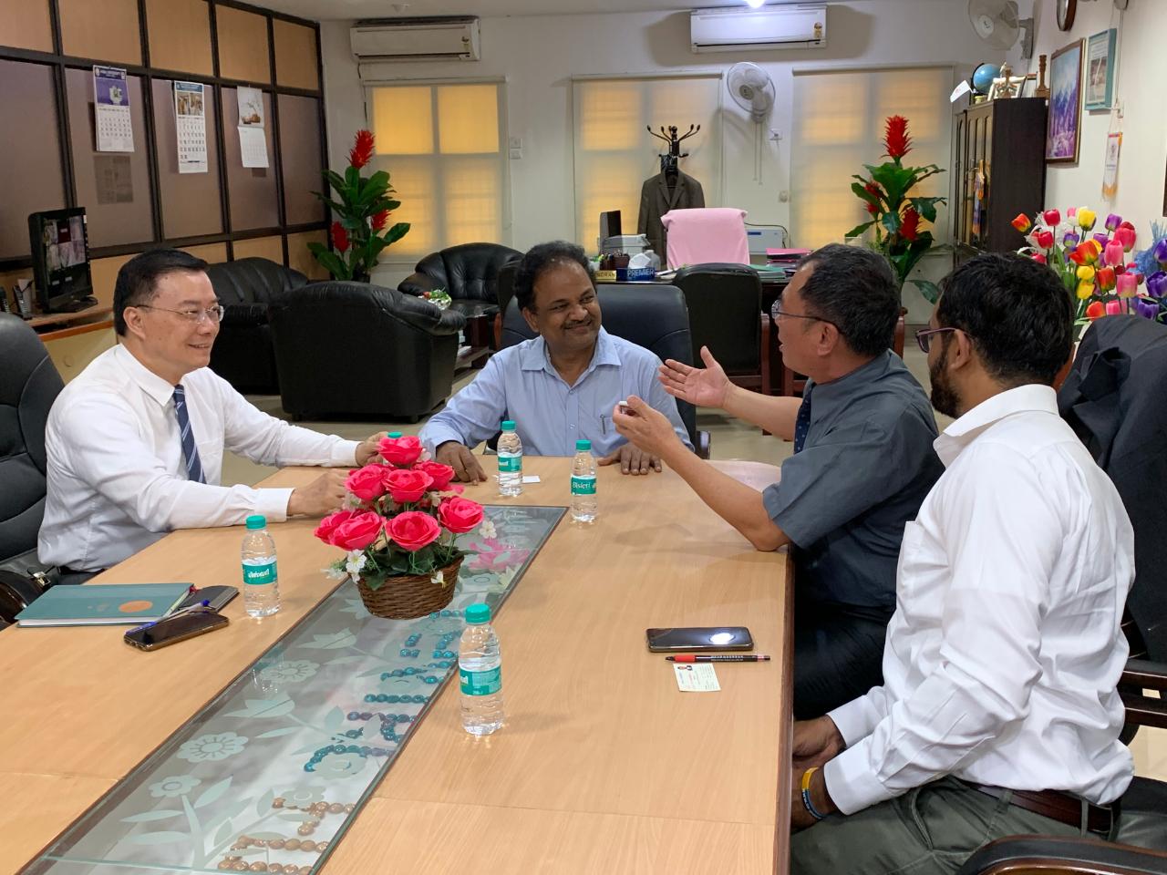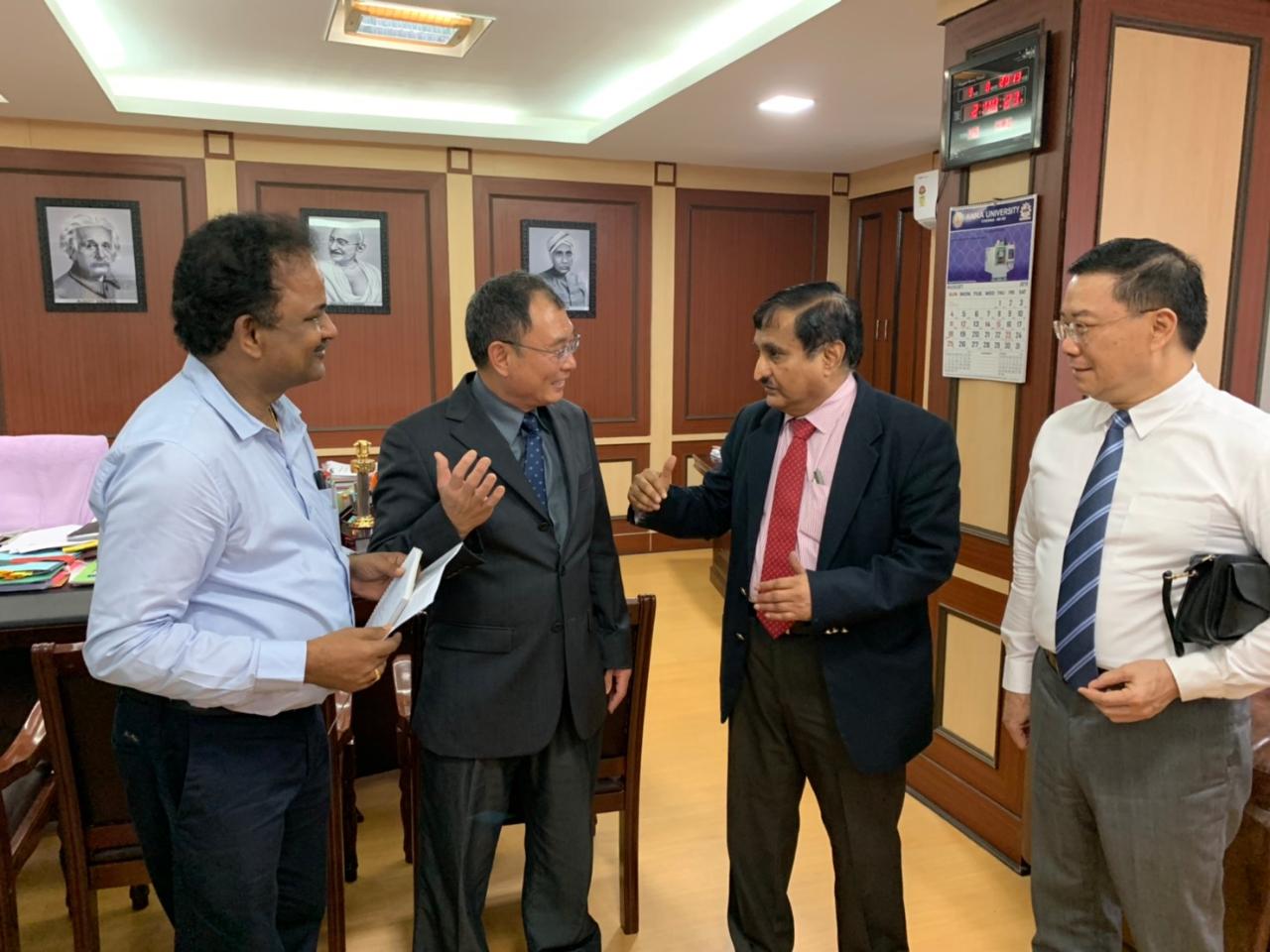 駐清奈辦事處李朝成處長安排並陪同國立勤益科技大學國際事務處黃世演處長(Professor Yen Huang)與靜宜大學國際學院柯羅許助理教授(Dr. Khire Rushikesh Ulhas) 89日下午前往清奈安南大學(Anna University)拜會校長(Vice Chancellor) Professor Dr. M. K. Surappa,洽談雙方學術合作交流事項,該大學學務長(Registrar) Professor Dr. L. Karunamoorthy及國際長Professor N. Rajendran、駐清奈辦事處金玉琪副組長在座。