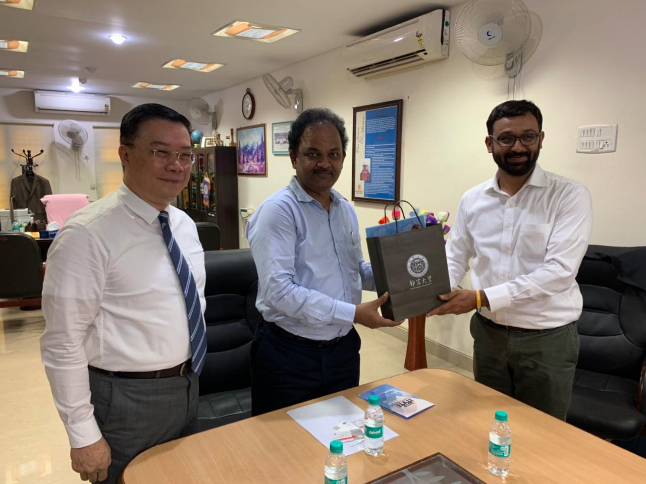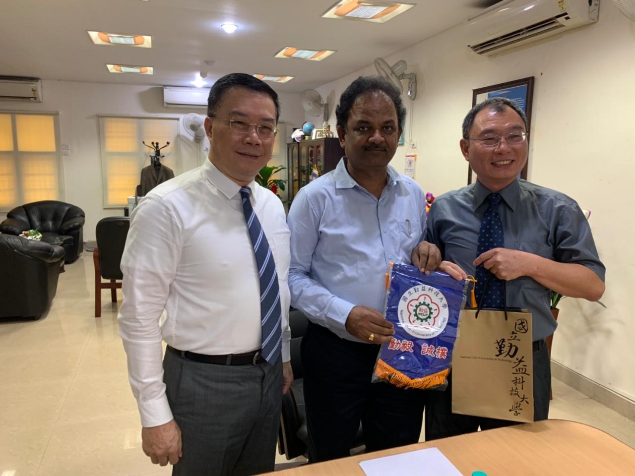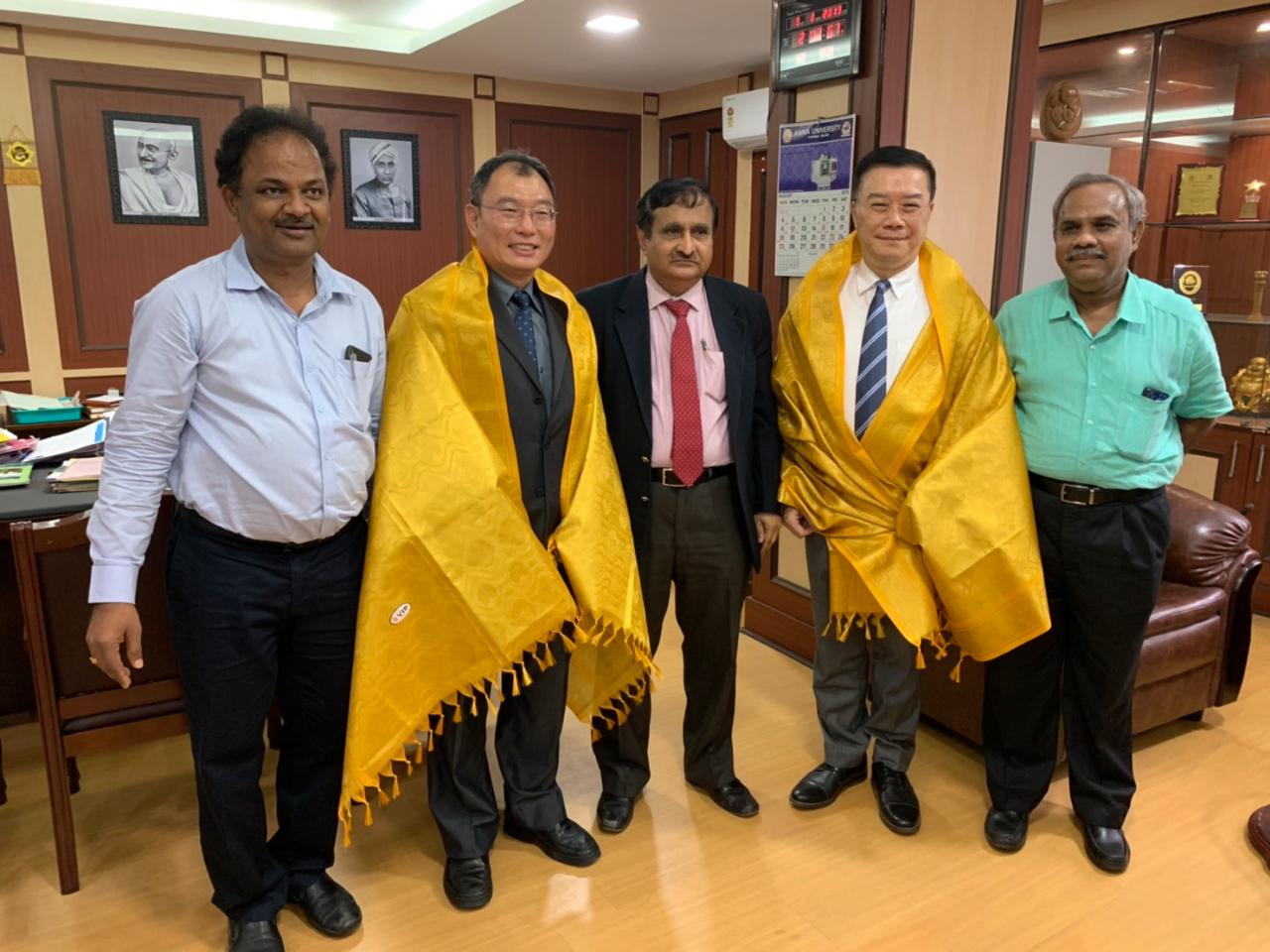 駐清奈辦事處李朝成處長安排並陪同國立勤益科技大學國際事務處黃世演處長與靜宜大學國際學院柯羅許助理教授前往清奈安南大學(Anna University)拜會校長(Vice Chancellor) Professor M. K. Surappa,洽談雙方學術合作交流事項。