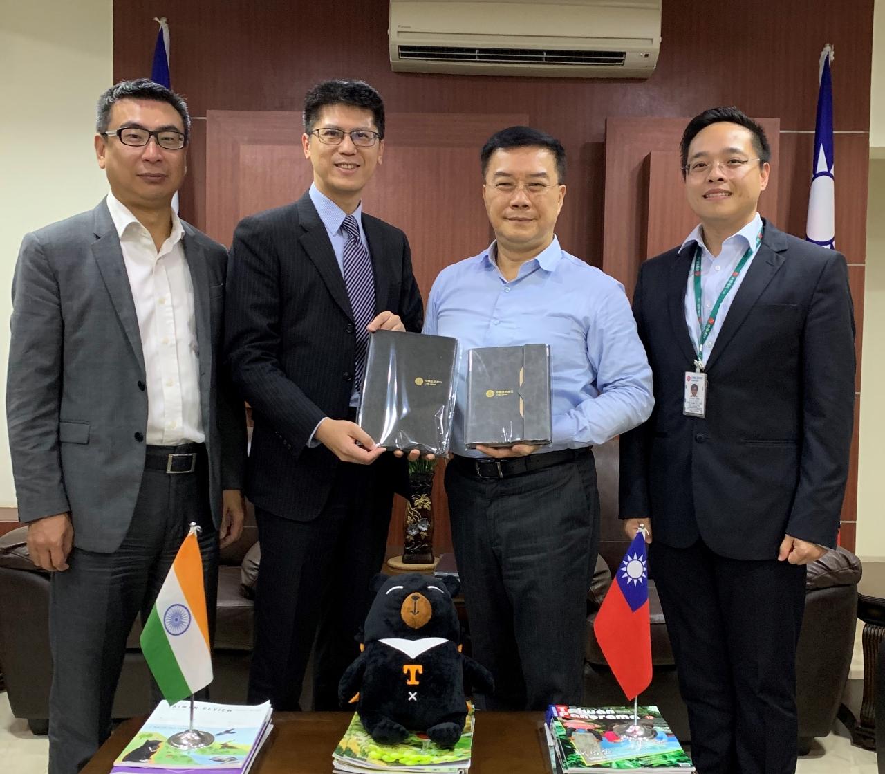 中國信託商業銀行清奈分行江明群行長偕即將離任的黃聖祺經理、新任李乾彰經理於11月28日下午拜會駐清奈辦事處李朝成處長,並就清奈生活資訊及臺商經營發展情形交換意見。