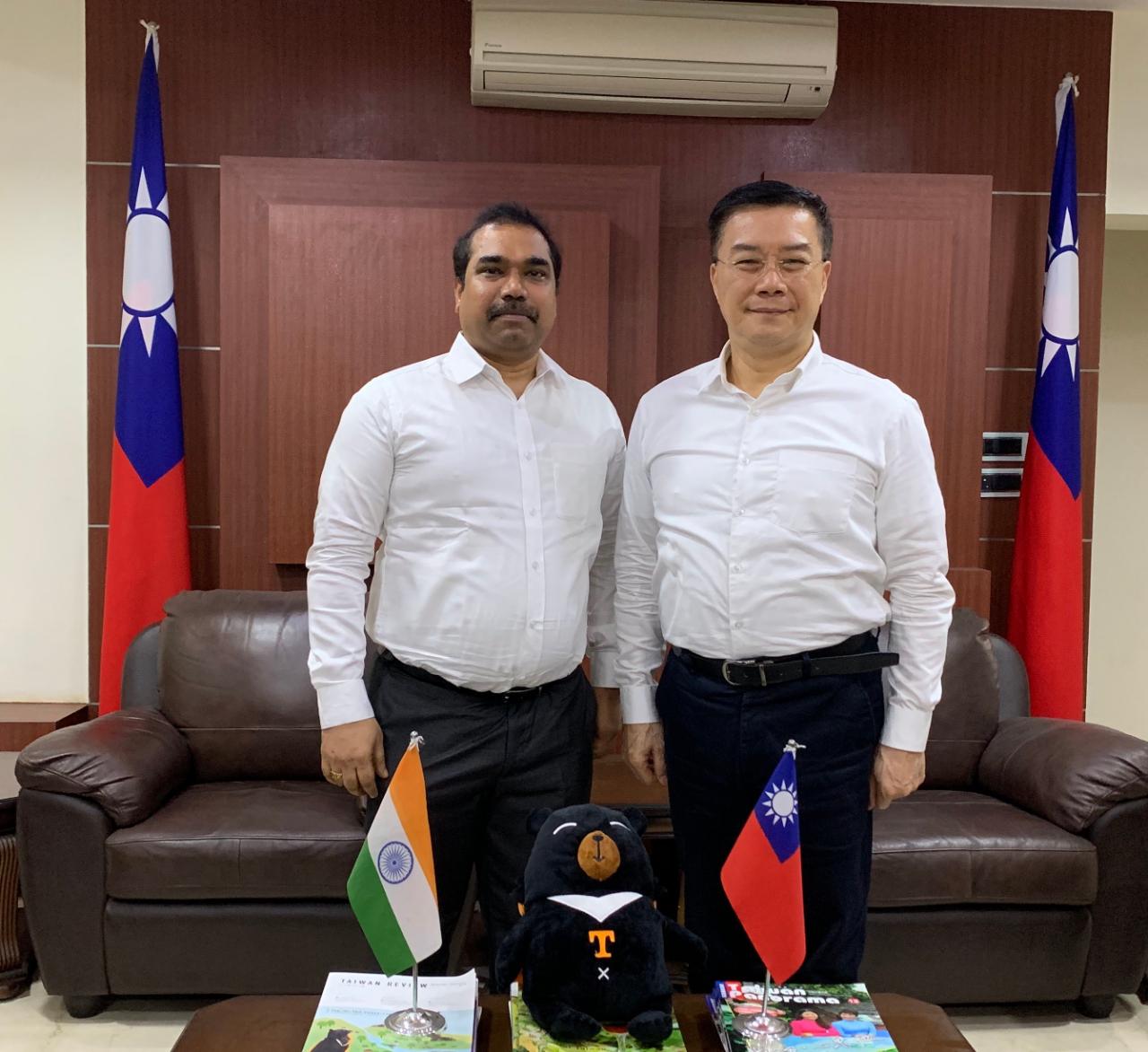 駐清奈辦事處李朝成處長(右)歡迎印度泰米爾那都州過濾芯製造商Sun Filtration Pvt. Ltd.總經理N. P. Prasad(左)來訪