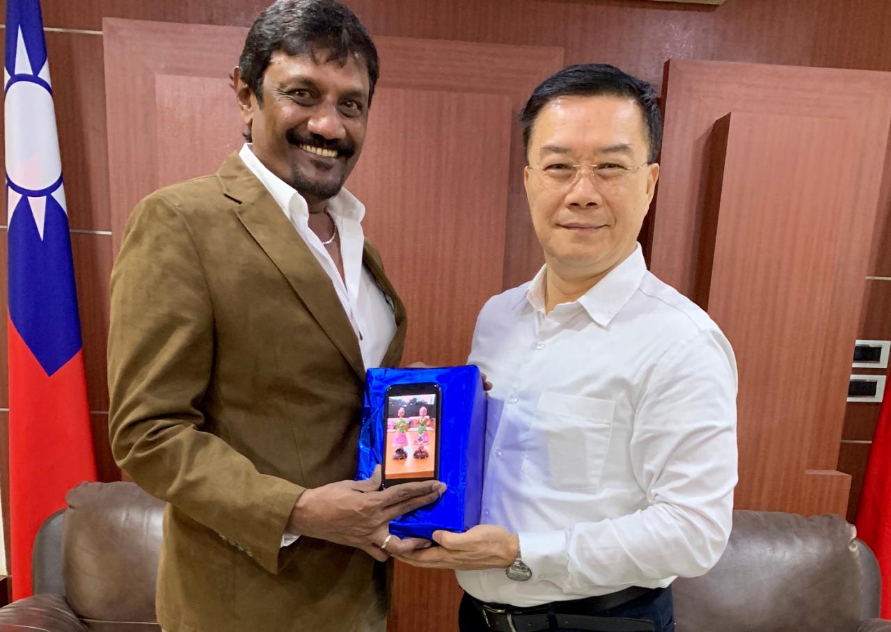 佰龍機械場股份有限公司南印度代理商 Mr. Elango(左)與李朝成處長(右)合影