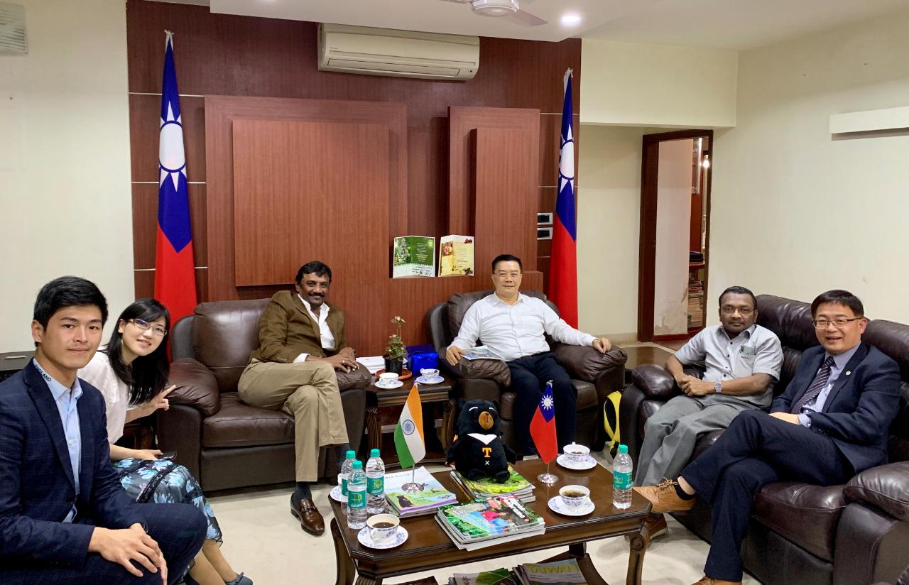 印商Inspiredge執行長Sumit Bothra陪同臺灣著名針織機械設計製造廠商佰龍機械廠股份有限公司(Pailung Machinery Mill Co. Ltd.)南印度代理商 Mr. Elango、臺商諾瓦材料科技股份有限公司楊聯智(Nano Yang)總經理、客戶經理吳芝菁(Janformy Wu)、國外業務代表黃少壕(Sam Huang)等人於12月28日下午拜會駐清奈辦事處李朝成處長,就南印度投資及貿易環境交換意見。佰龍機械廠股份有限公司南印度代理商 Mr. Elango過去數年代理佰龍公司針織機械銷售數量每年均超標,目前已總共銷售超過六千部,對台灣與印度雙邊貿易貢獻卓著,李朝成處長特別向Mr. Elango表達誠摯感謝之意。