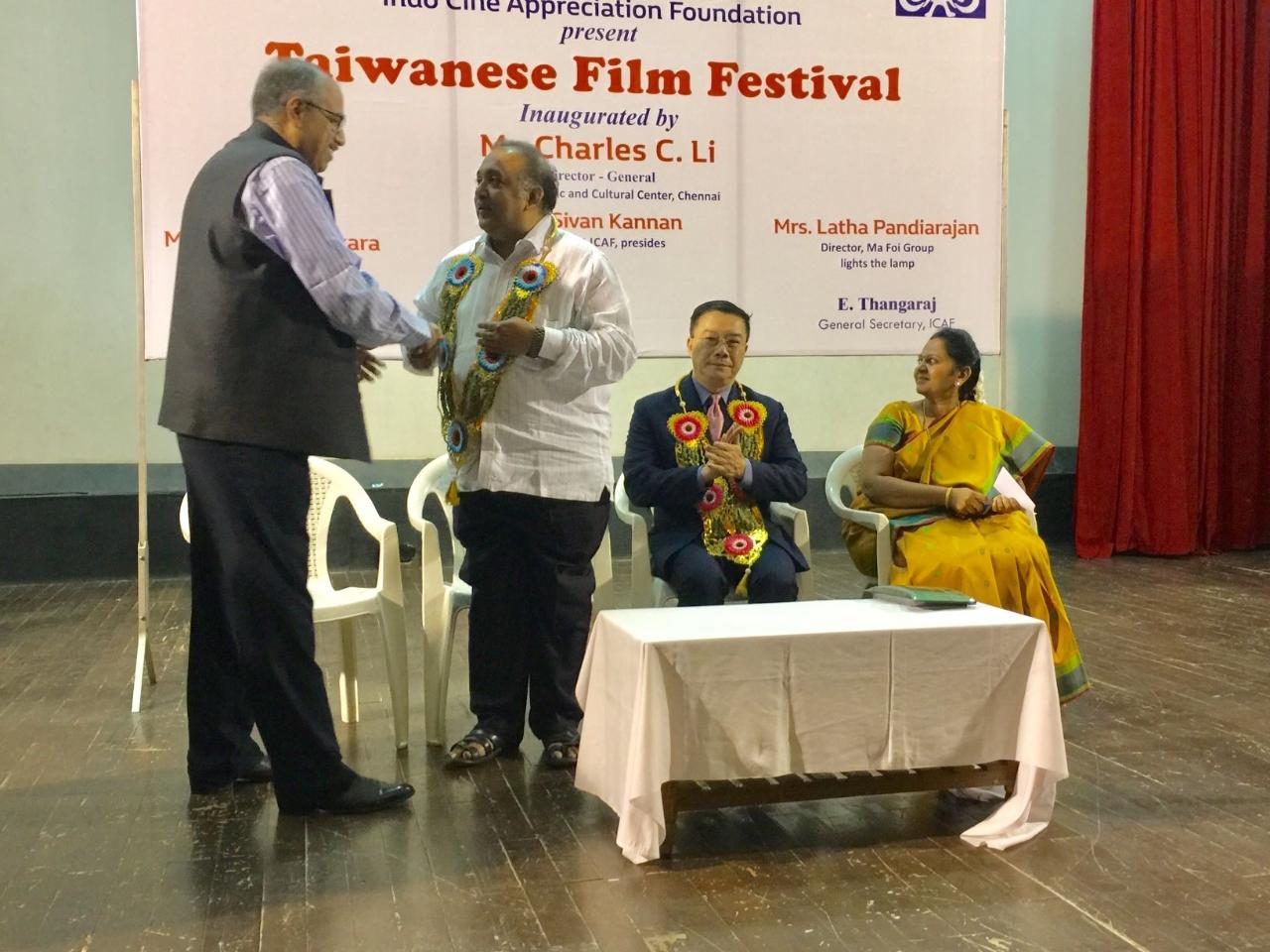 Taipei Economic and Cultural Center in Chennai and Indo Cine Appreciation Foundation host Chennai Taiwan Films Festival Opening at 18:00 on October 8 in Russian Center of Science and Culture.Charles Li,Director-General from Taipei Economic and Cultural Center in Chennai and Ravi Kottarakara,Secretary,South Indian Film Chamber of Commerce and E. Thangaraj,Scretary from Indo Film Appreciation Foundation light up and make the blessings together.