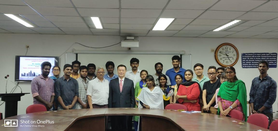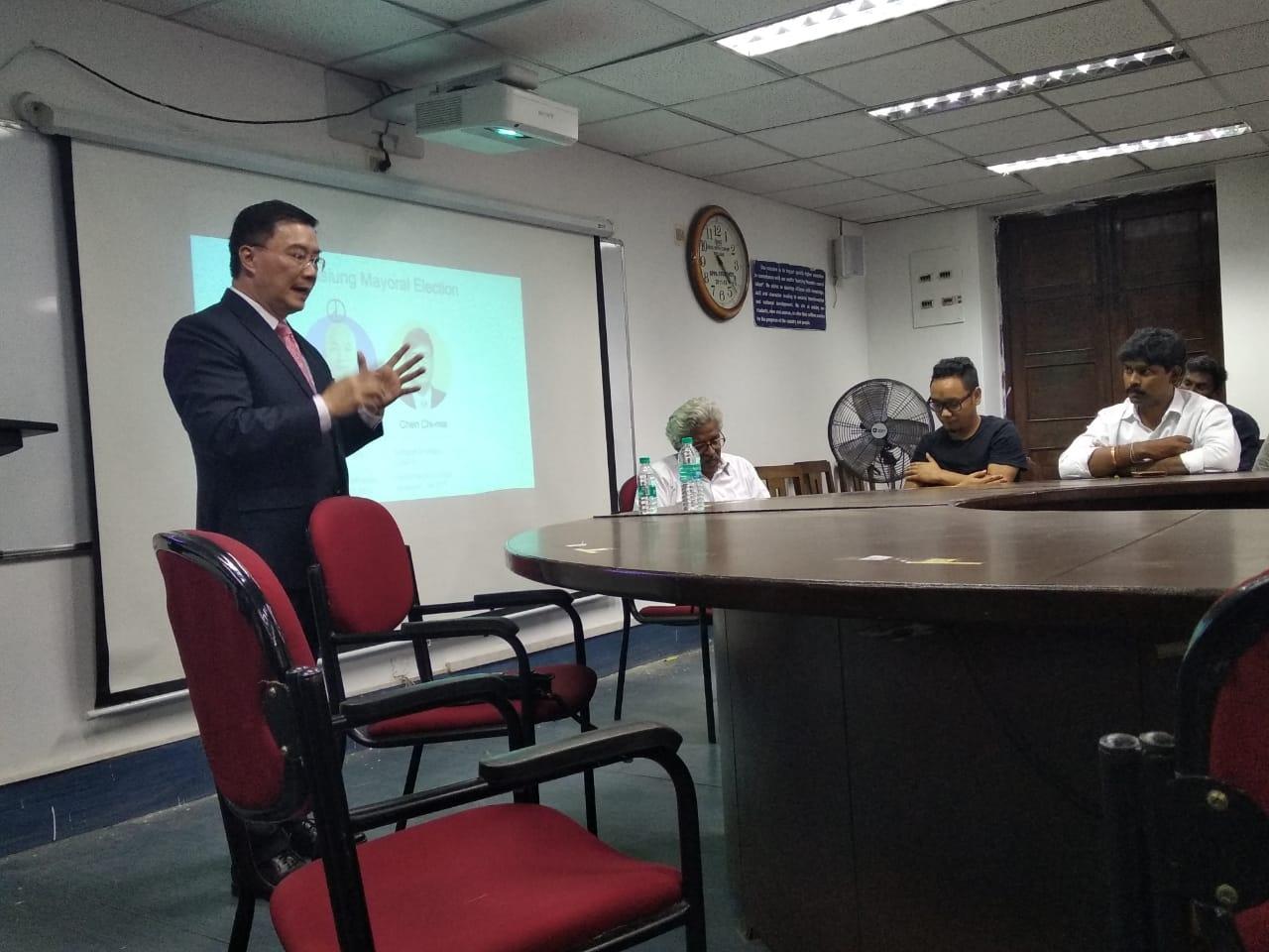 At the invitation of Prof. Ramu Manivannan, Head of the Department of Politics and Public Administration at University of Madras, Mr. Charles Li, Director-General of TECC, has delivered a special speech on the meaning and significance of the nine-in-one elections held in Taiwan on November 24th, 2018.