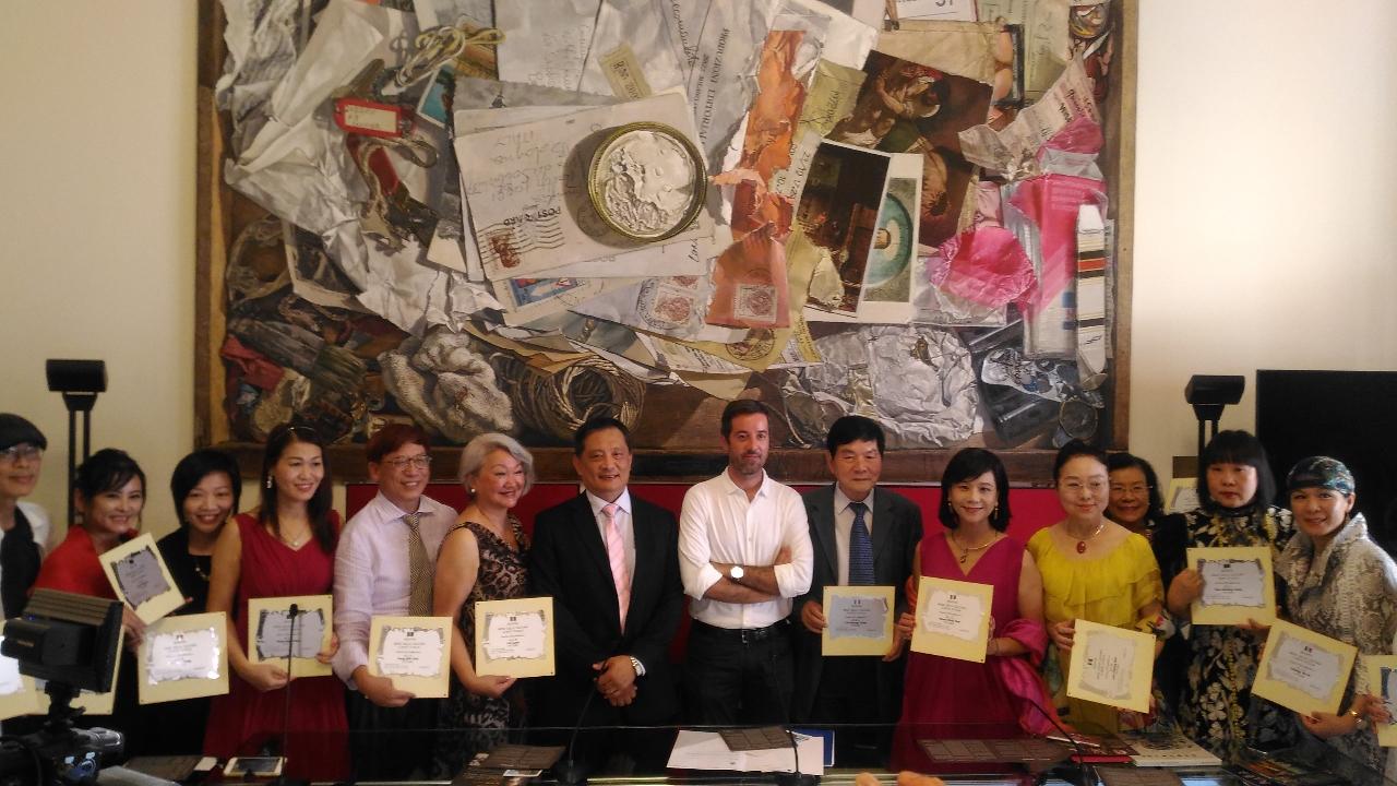 李新穎大使及波隆那文化局長Marco Lombardo與全體參展藝術家合影