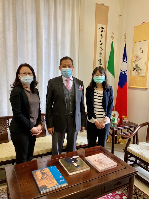 駐義大利代表處李新穎大使在10月16日接見兩位文化部鄧美容組長及林恬瑜秘書,歡迎兩位新同仁抵任履新,並成立史上首次駐義大利文化組。