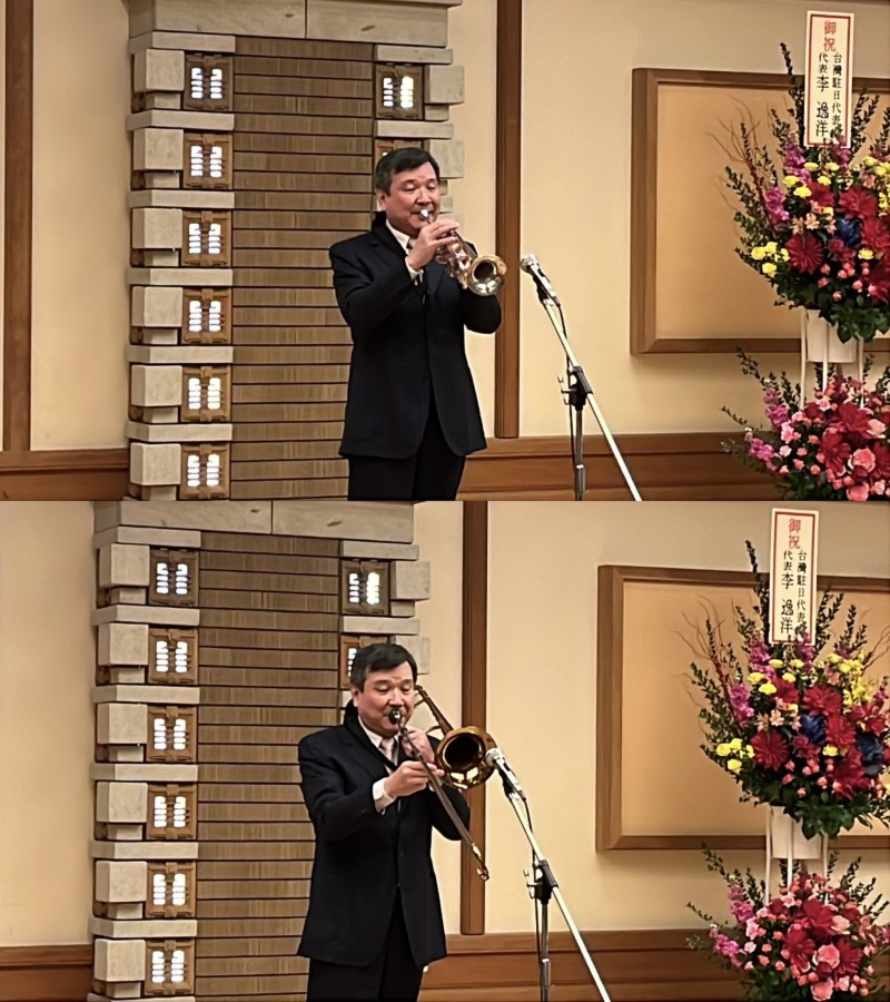 駐日代表李逸洋以小號、長號及薩克斯風吹奏「戀戀北迴線」曲目