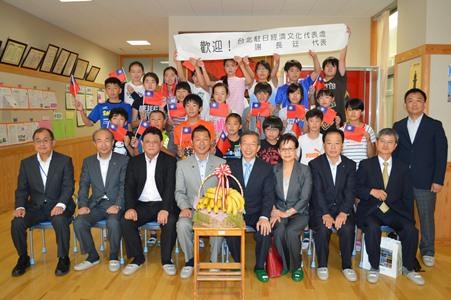 駐日本代表謝長廷伉儷(前右4,3)與御殿場市若林洋平市長(前左4)、御殿場小學校長高橋正彦(前左1)合影
