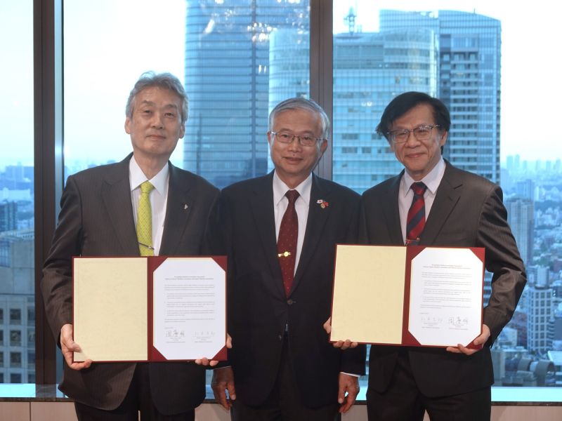 中華民国医師公会全国聯合会の周慶明理事長(右)と日本医師会の松本吉郎会長(左)は今月8日、東京都内で「台日両国医師会友好協定」に署名した。写真中央は証人として立ち会った台北駐日経済文化代表処の蔡明耀副代表。