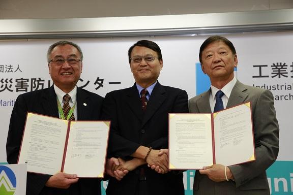 工業技術研究院(ITRI)が16日、日本の海上防災対応機関である一般財団法人海上災害防止センター(MDPC)と「毒性化学物質による災害対応での協力了解覚書」を締結した。左からITRIグリーンエネルギー及び環境研究所の胡耀祖所長、行政院環境保護署毒物及び化学物質局の謝燕儒局長、日本のMDPCの岩男雅之理事長。