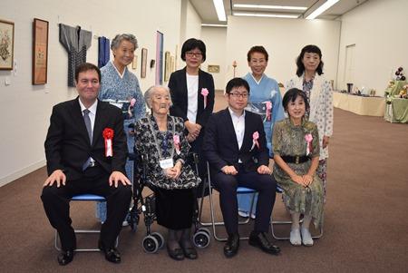 王淑芳・駐日代表処台湾文化センター長(後列左2)、星野茂・日本手工芸美術協会会長(前列左2)