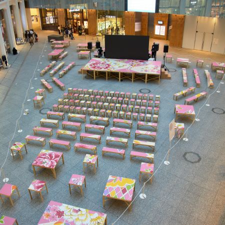 東京・丸の内「KITTE」1階アトリウムで展示された林明弘(マイケル・リン)と日本のアトリエ・ワンによるコラボ作品『Untitled Gathering(Tokyo2020)』
