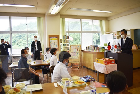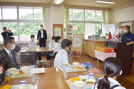 この日は、同校など笠間市の公立中学校全6校の学校給食に2,500人分の台湾産マンゴーが初めて提供されることから、山口伸樹・笠間市長をはじめ、同市の教育関係者らも出席し、交流給食会が開かれた。山口市長は、「謝・駐日代表が稲田中学校を訪問した機会に、台湾について、さらには日本と台湾の歴史的な関係もしっかりと学んでほしい」とあいさつした。台日双方の関係者は、生徒たちが学校給食で台湾のフルーツを食べることをきっかけに、台湾への関心や理解がより一層深まるよう期待を寄せている。