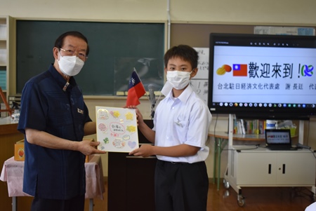 台湾産マンゴー提供に生徒たちから感謝の色紙贈呈