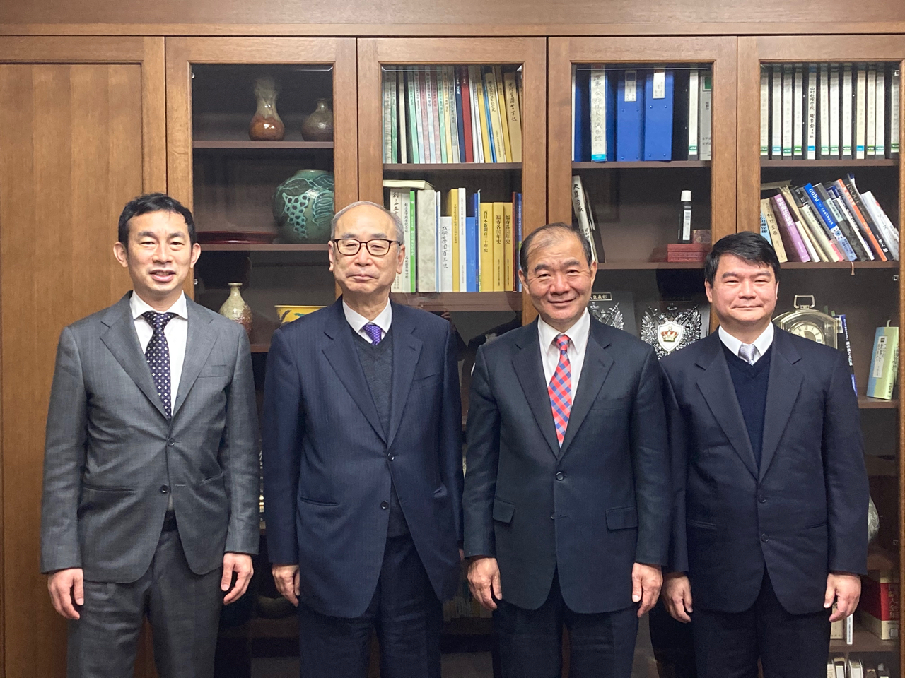 12月8日下午4時30分 駐福岡辦事處陳銘俊處長(總領事)偕王鴻鳴秘書拜會中村調理製菓專門學校理事長/校長中村哲,洽談促進教育交流事宜。