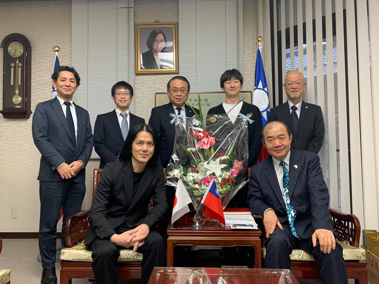 ORIGINAL Inc.伏谷博之社長、合志未來研究所濱田善也社長、朝寝坊屋公司小路輔代表、love fm國際廣播本部本竹石明弘部長、社福團體三幸橋本一郎理事長及三好不動産三好徹經理一行2月5日拜訪本處,並就台灣文化交流慶典交換意見