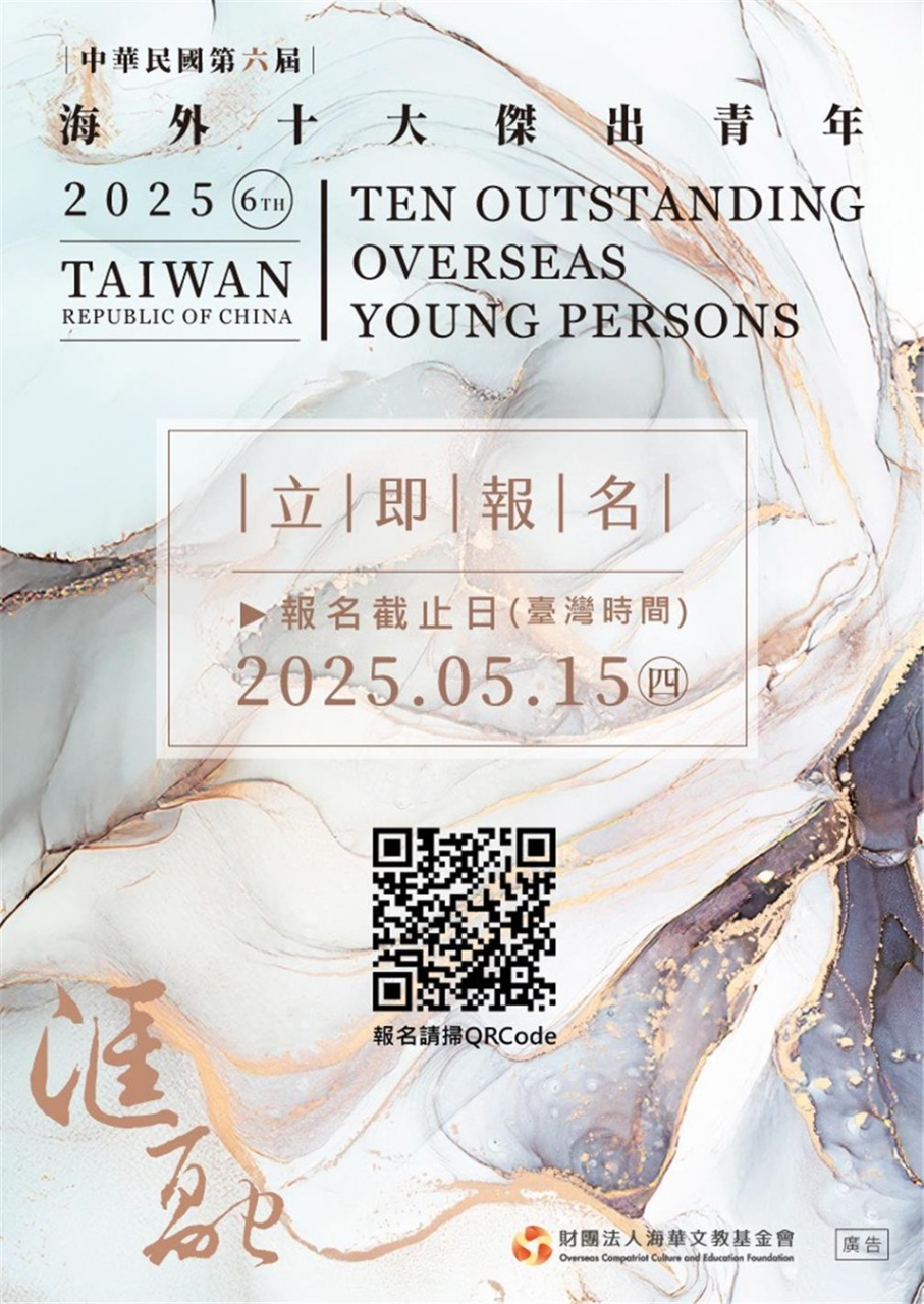 2025年中華民國第六屆海外十大傑出青年選拔與表揚辦法