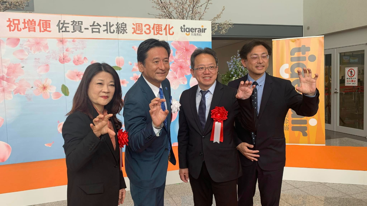 本處陳銘俊處長4月1日出席佐賀-台北每週三班開儀式。山口祥義知事及虎航許致遠商務長出席共襄盛舉。