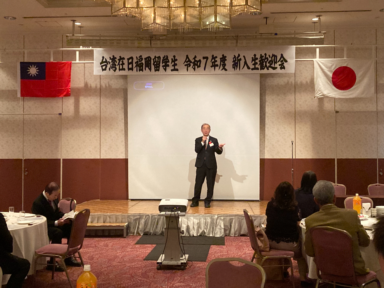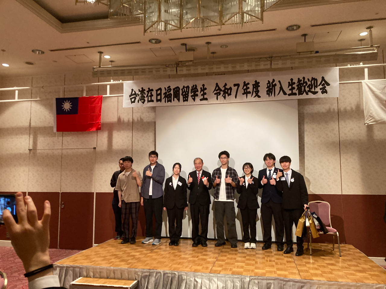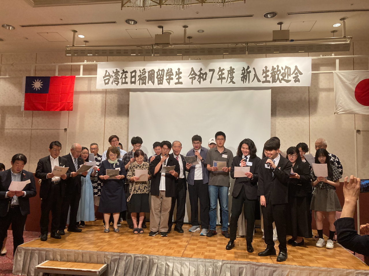 台北駐福岡經濟文化辦事處處長陳銘俊總領事夫婦偕王鴻鳴秘書應邀出席。 前僑務委員海澤洲、僑務委員本鄉啟成、九州台灣同鄉會會長海家慧、福岡縣台灣友好議員連盟會長加地邦雄、山口縣日台交流協會會長重富剛克、美彌市觀光商工部田原誠也、福岡縣國際交流中心荒卷久美、九州國際學生支援協會松永典子、大野城市國際交流協會関井利夫及九州大學、九州工業大學、福岡大學、福岡產業大學的留學生計60餘人參加。 陳總領事致詞表示,恭喜各位同學到日本留學,日本可以説是對我留學生最親善友好的國家,而台灣在日福岡留學生會擁有一位很棒的會長及優秀的幹部群,盡心盡力為同學服務。陳總領事除了分享自己的求學歷程,並勉勵同學認真求學、拓展視野與觸角,立志為台日交流做貢獻,同時要多與家人聯絡報平安,勿讓家人擔心,期許每位同學都能成為內外兼修的傑出人才。 接著由留學生會李劉晟會長介紹新任幹部、年度活動及舉行摸彩與大合唱,最後是團體照,為2025年的迎新活動劃上圓滿句點。