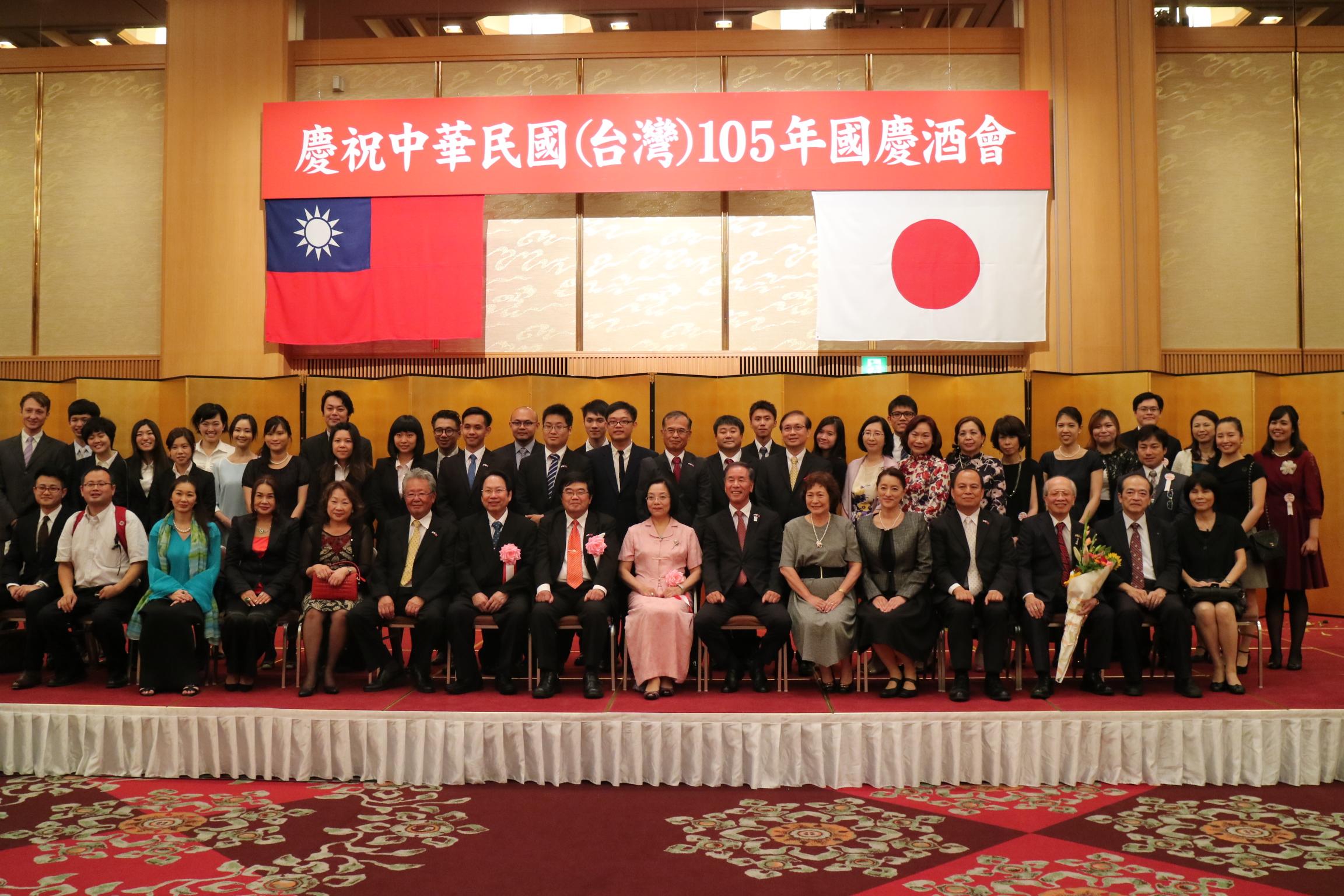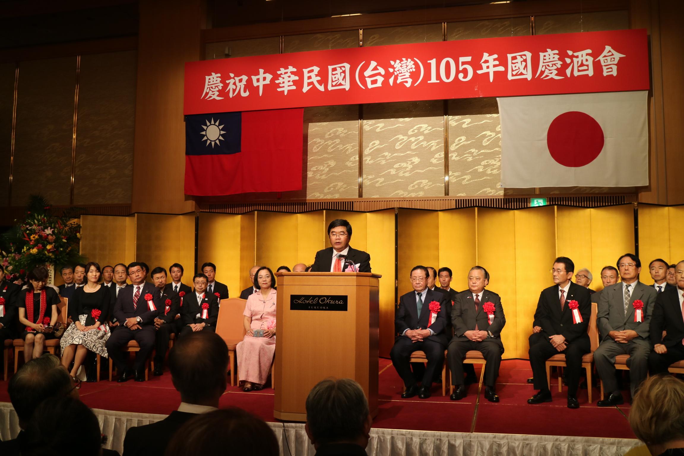台北駐福岡經濟文化辦事處於10月6日晚間6時於日本福岡大倉飯店四樓平安之間舉行中華民國105年國慶酒會,包括眾議院鬼木誠議員令夫人鬼木悅子、福岡縣議會中尾正幸議長、自由民主黨近未來政治研究會山崎拓最高顧問、參議院野田國義議員、福岡縣議會台灣友好議員連盟加地邦雄會長等日本社會各界貴賓及旅日僑胞共計超過800餘人出席。